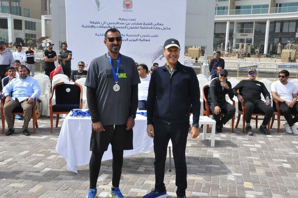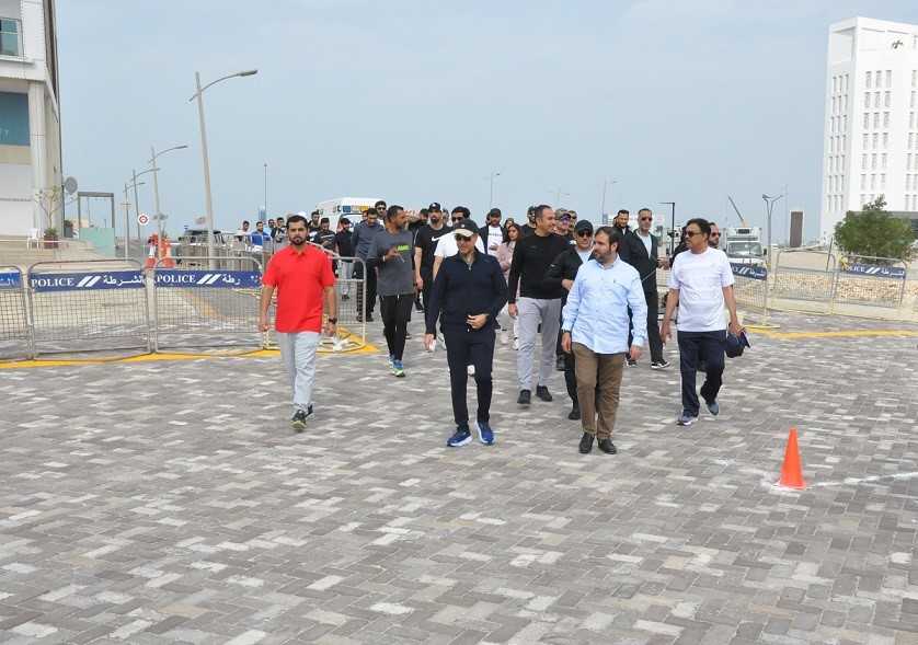The Interior Ministry Undersecretary for Nationality, Passports and Residence Affairs (NPRA), Shaikh Hisham bin Abdulrahman Al Khalifa participated in the activities of the Bahrain Sports Day that the NPRA organised at the Water Garden at the Seef District. He said that such national activities promote community partnership and healthy lifestyles.