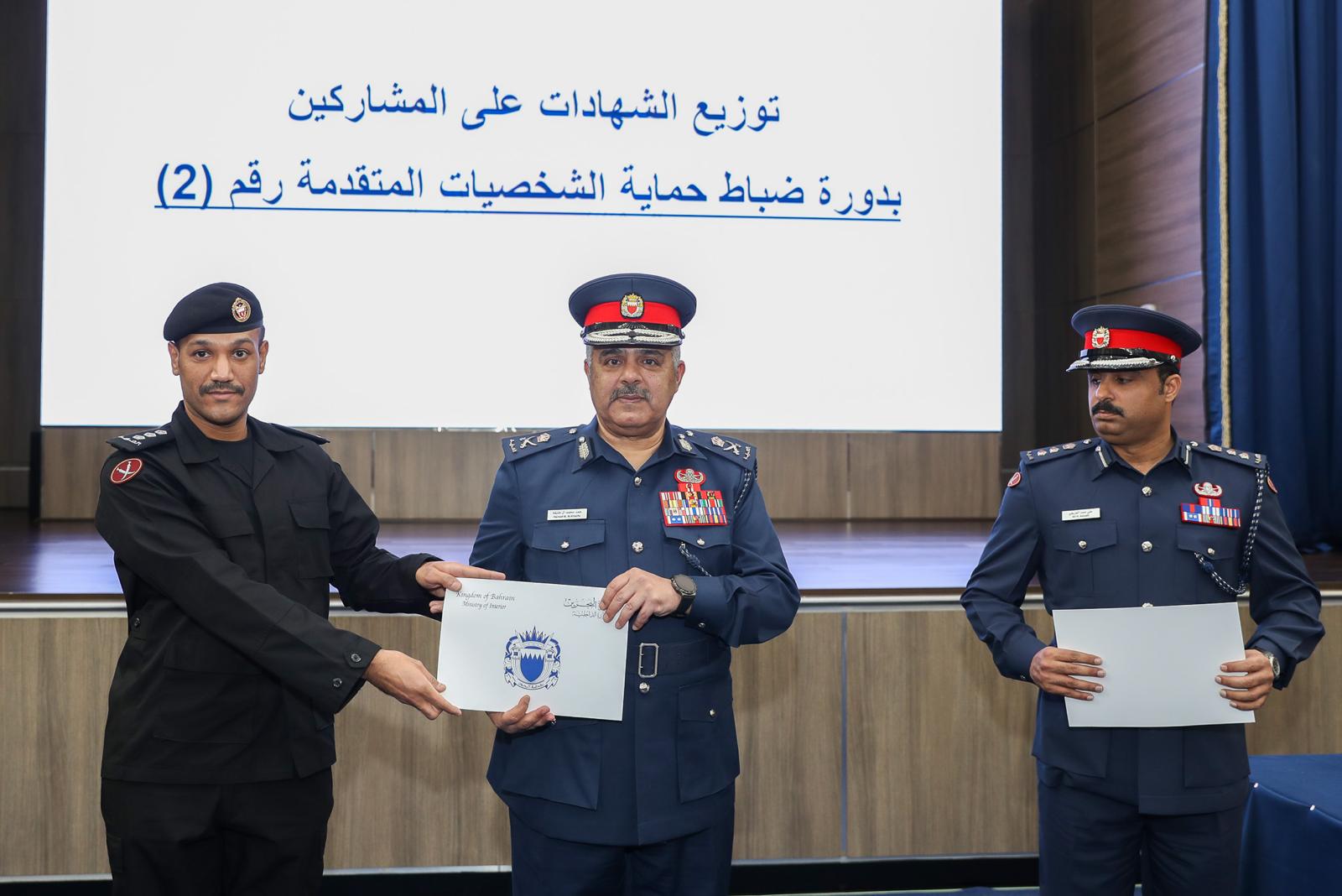 Deputy Chief of Public Security Major-General Dr Shaikh Hamad bin Mohammed Al Khalifa attended a graduation ceremony for some specialised courses at the Protocols and VIPs Protection Directorates. The courses were attended by officers, commissioned officers and other ranks from security directorates of the Interior Ministry, Bahrain Defence Force and National Guard.