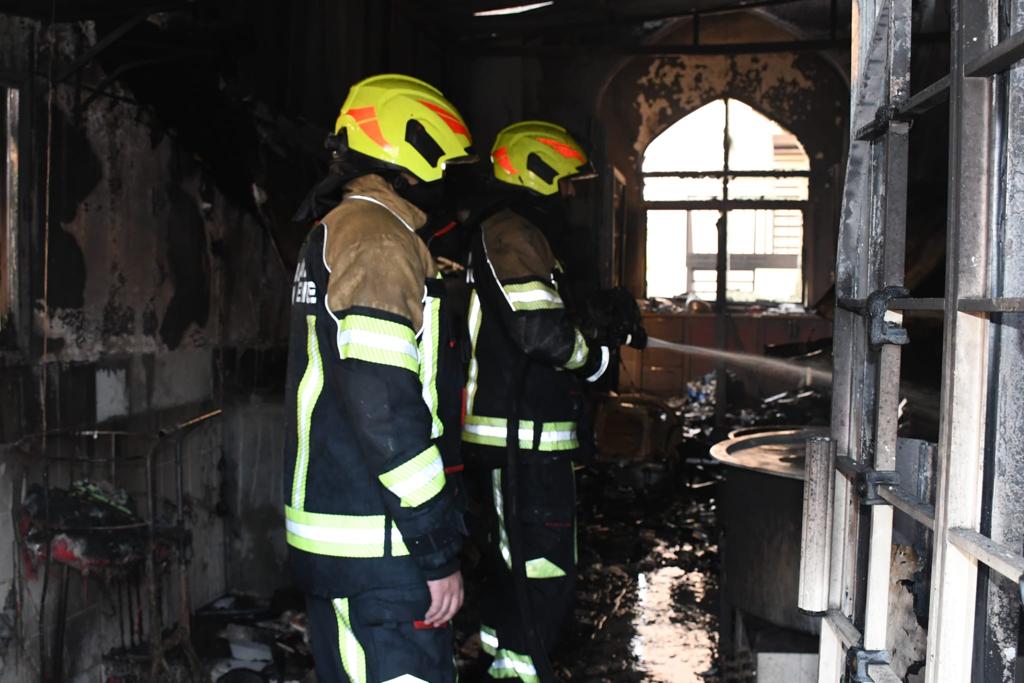 The General Directorate of Civil Defence deployed the rescue and firefighting team shortly after receiving a case. The team extinguished a fire in a cooking area affiliated with a mosque in Hoora. One man was injured and referred to the hospital for treatment. The firefighting team consisted of 12 personnel and three vehicles. Details indicate that a gas cylinder lead was the cause.