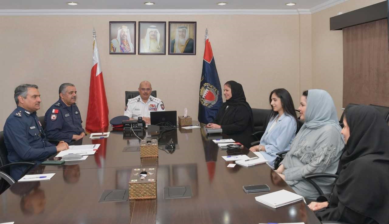 Chief of Public Security, Lt-General Tariq Al Hassan, received the Secretary of the Board of Trustees of AlMabarrah AlKhalifia Foundation Shaikha Hala bint Mohammed Al Khalifa and the accompanying delegation. Deputy Chief of Public Security, Major-General Dr Shaikh Hamad bin Mohammed Al Khalifa and Commander of the Royal Academy of Police (RAP), Brigadier Fawaz Al Hassan, attended.