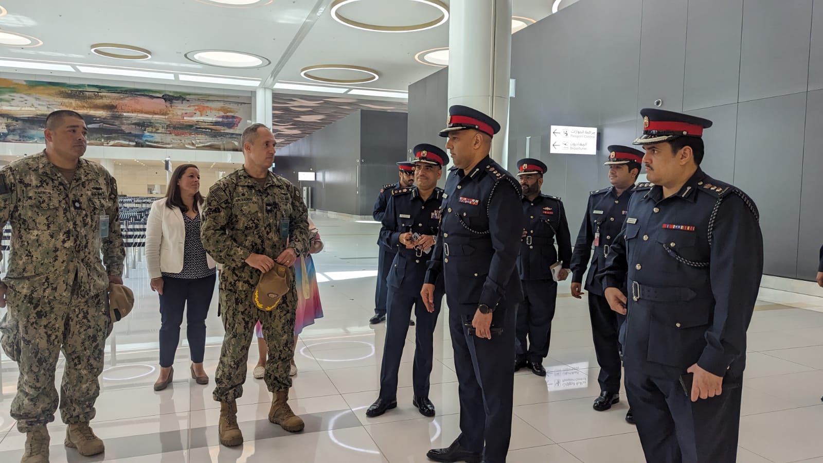 Director General of Ports Security and the commanding officer, Naval Support Activity (NSA) toured Bahrain International Airport, during which the American official was briefed on the efforts of the directorate in implementing procedures and security inspections inside the airport.