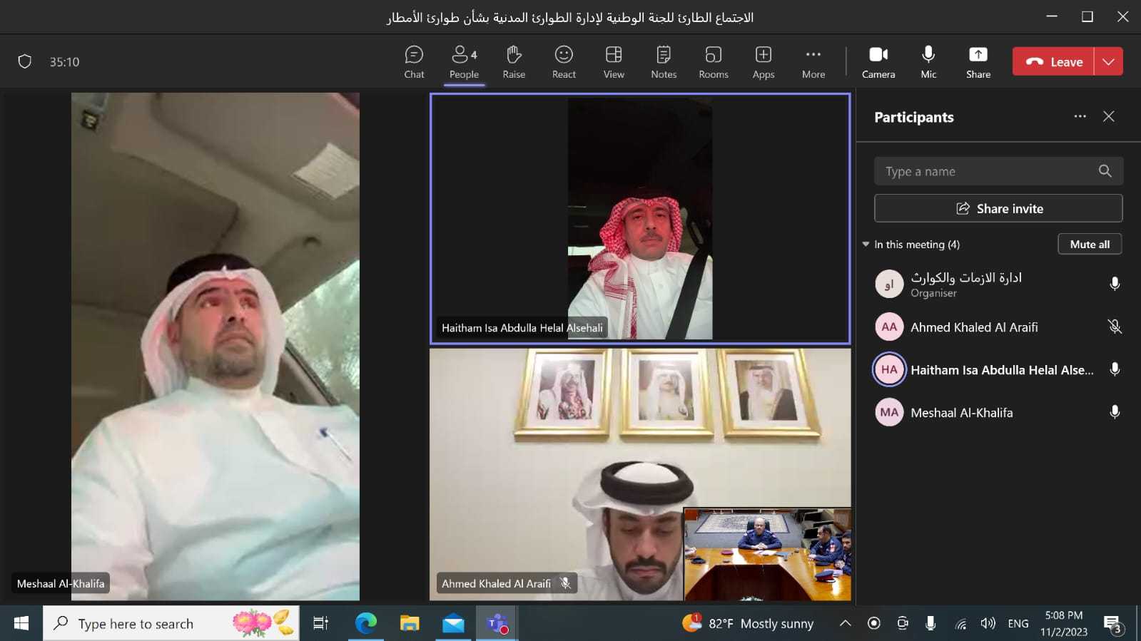 Chief of Public Security, Lt-General Tariq Al Hasain, has chaired an urgent meeting of the National Disaster Management Committee with the participation of representatives from ministries and concerned bodies.