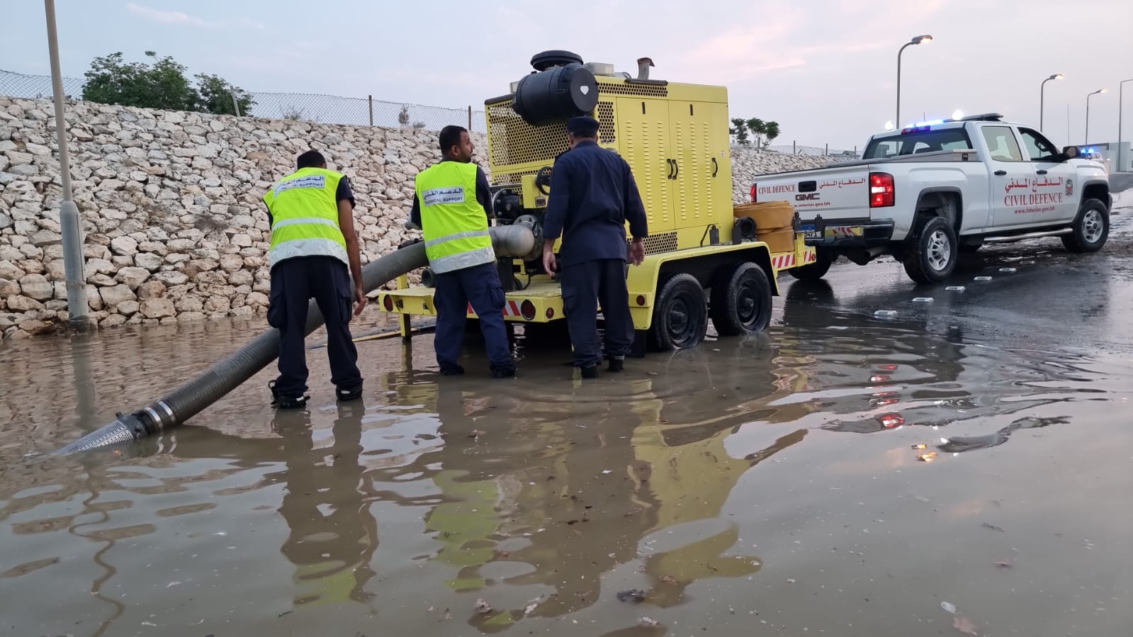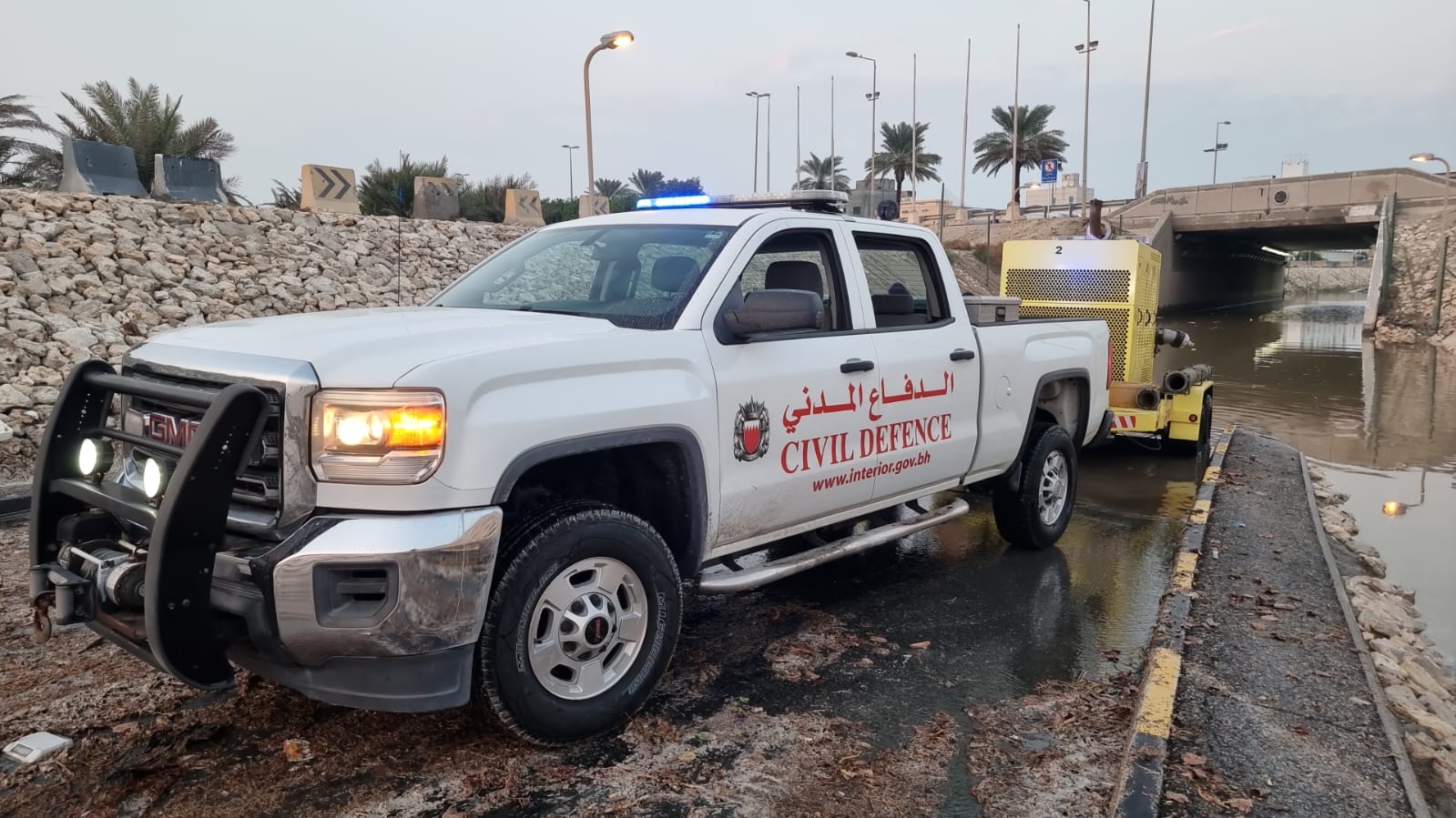 Per the follow-up and general safety instructions of His Excellency Interior Minister and Chairman of the Civil Defence Council, General Shaikh Rashid bin Abdullah Al Khalifa, the competent Interior Ministry Directorates have dealt with heavy rain implications.