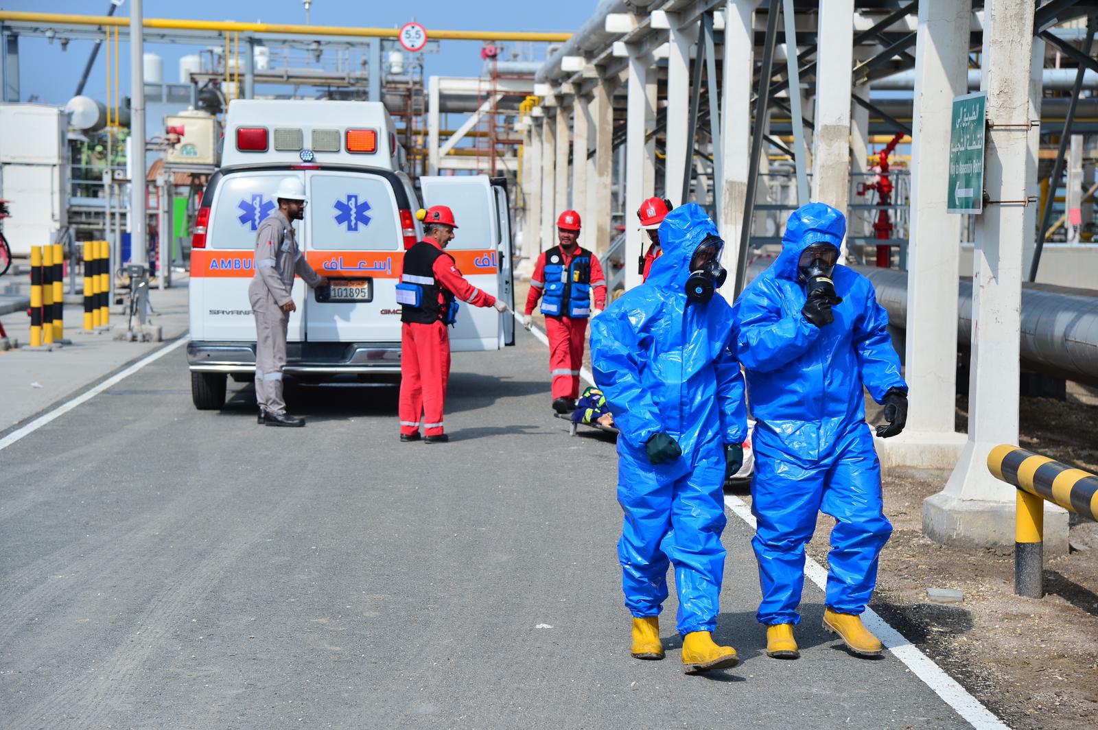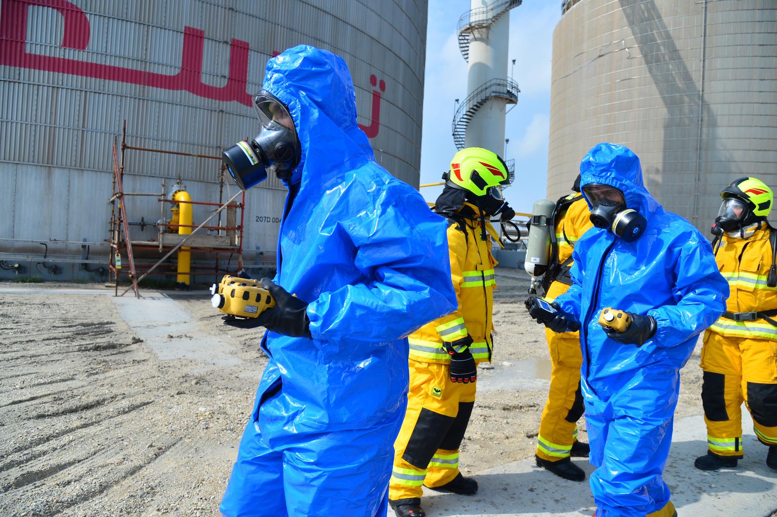 The drill aimed to check the readiness of the Civil Defence in dealing with hazardous substances and develop emergency plans for rescue and firefighting in association with the company’s fire section.