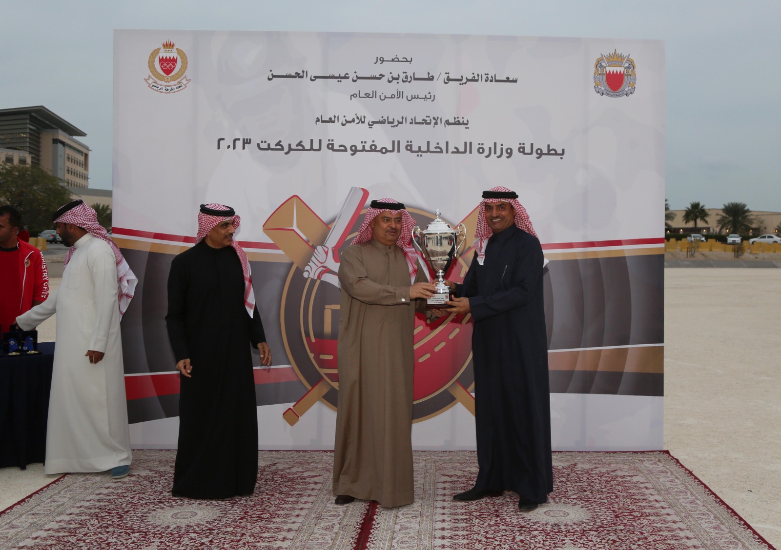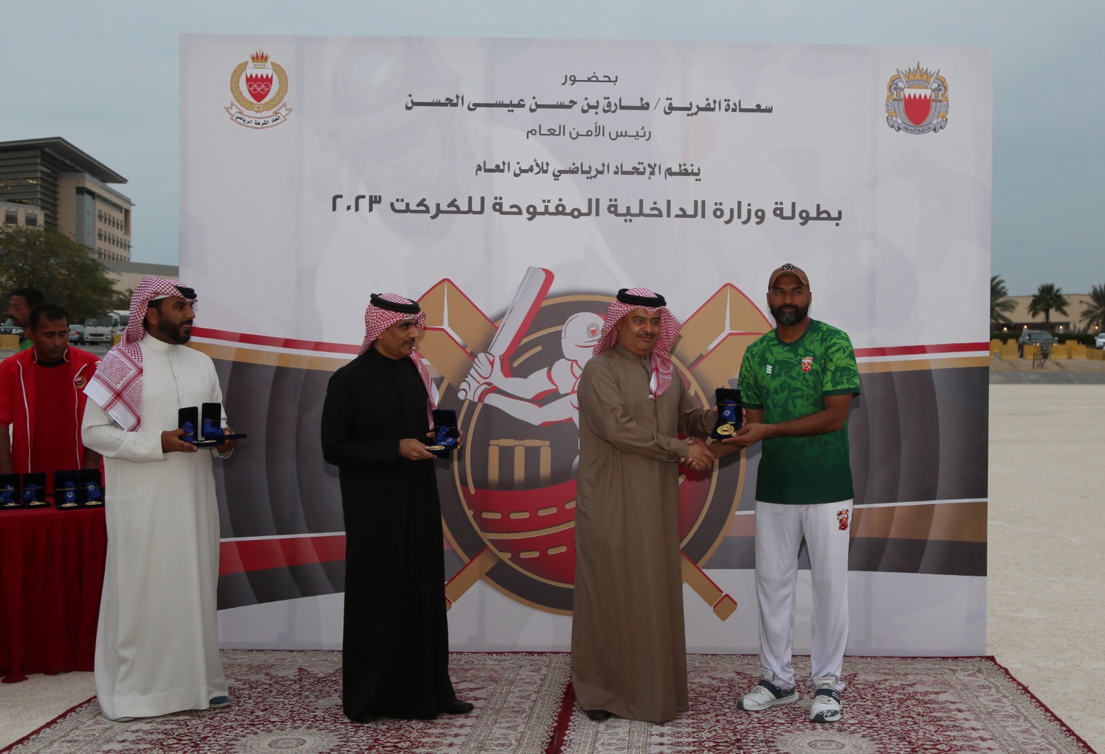 The Chief of Public Security, Lt-General Tariq Al Hassan, attended the Interior Ministry Open Cricket Tournament finale at Bapco Cricket Playground. The Public Security Sports Association organised the event as part of the national celebrations. Twenty teams took part in the competition.