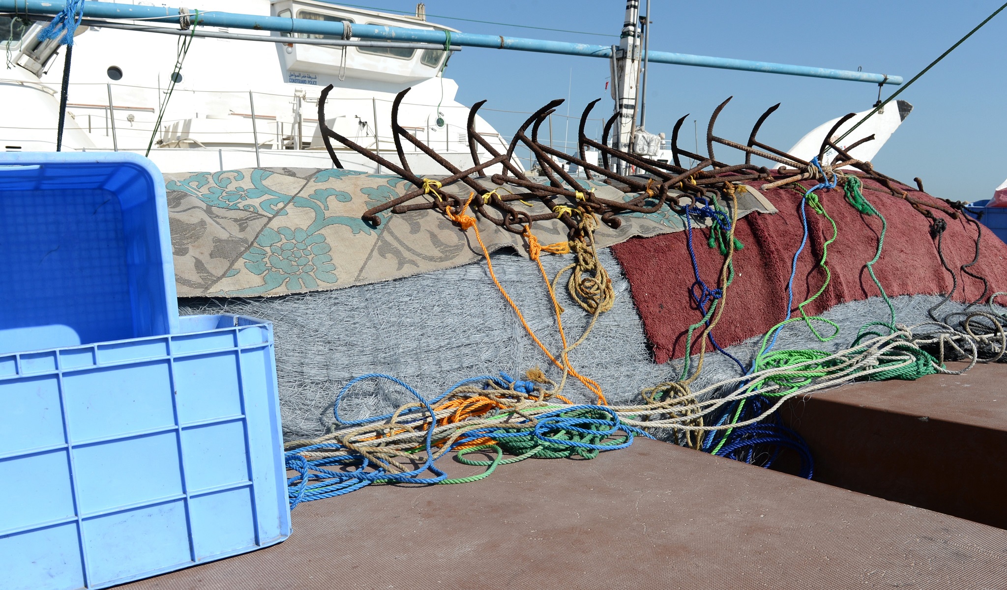 The Coast Guard patrols have arrested nine Asian fishermen and seized their dhow (Banoosh) in east Fasht Al Jarim for fishing with banned fishing nets. Legal proceedings were taken to refer the case to the Public Prosecution. The Coast Guard called upon seafarers to follow the rules related to avoiding fishing during fishing bans, using illegal fishing tools and overfishing to protect fisheries and natural reserves.