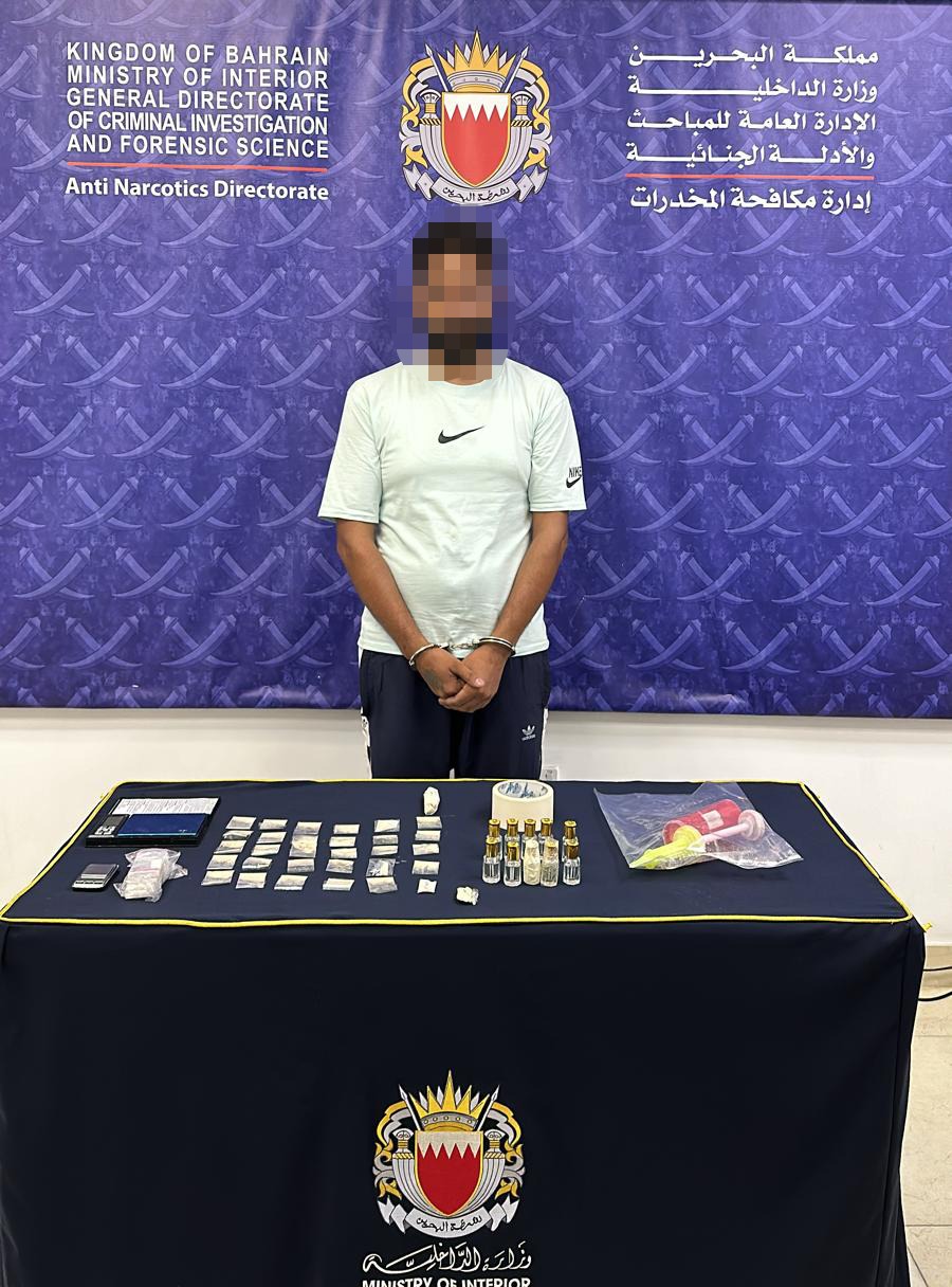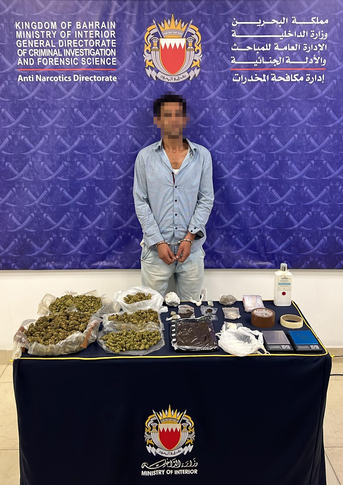 The Anti-Narcotics Directorate of the General Directorate of Criminal Investigation and Forensic Science arrested, in separate cases, several individuals of different nationalities with more than 7.8 KG of various narcotic and psychotropic substances worth more than BD54,000.