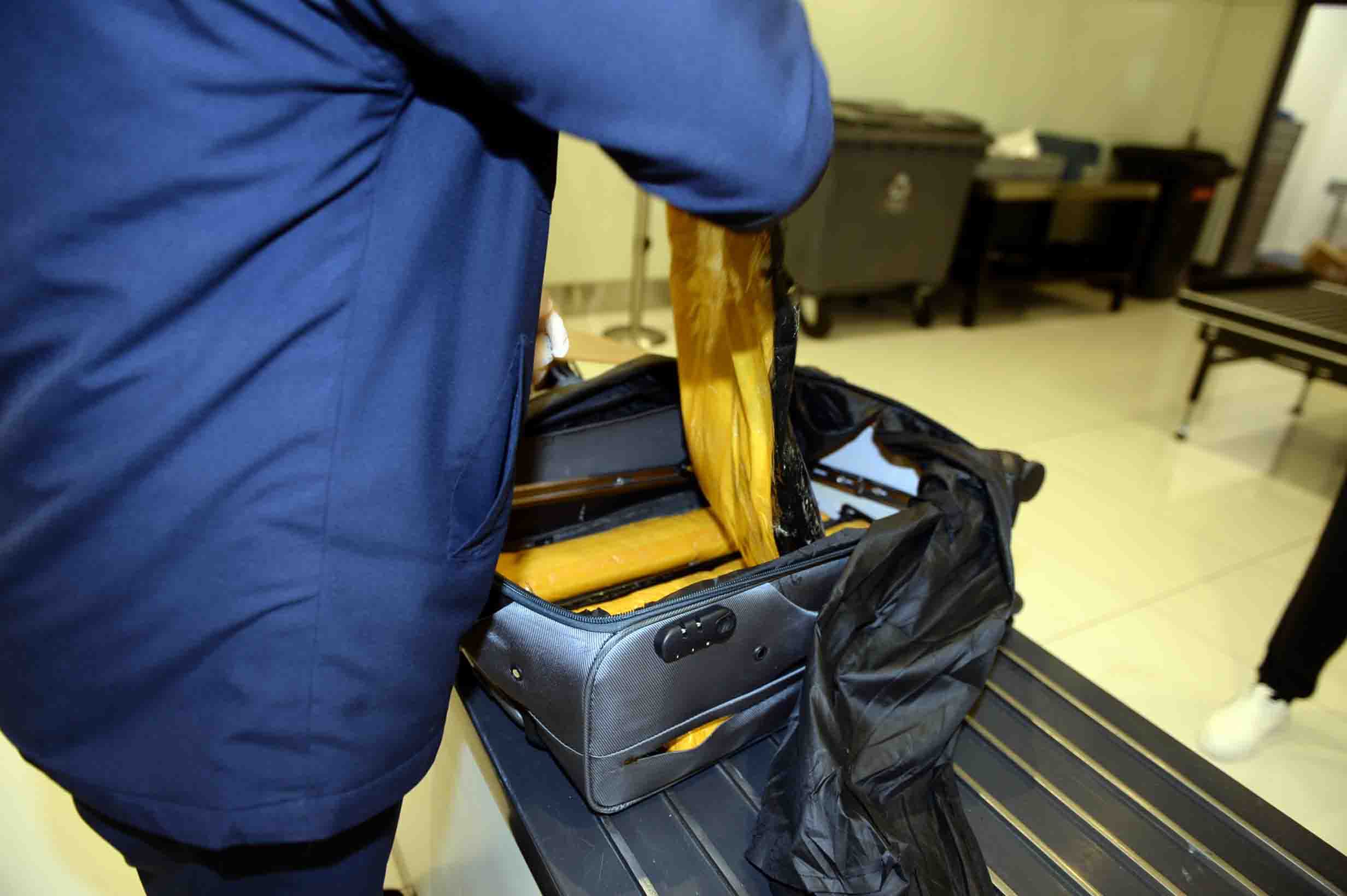 Customs officers suspected the traveller upon his arrival at the airport. He was referred to the red lane, and illicit drugs were found inside four packages hidden professionally in the bag. The case was referred to the Anti-Narcotics Directorate of the General Directorate of Criminal Investigation and Forensic Science, which managed to arrest a second Asian suspect, 23, inside Bahrain over his involvement in the incident. Legal proceedings were taken, and the case was referred to the Public Prosecution.