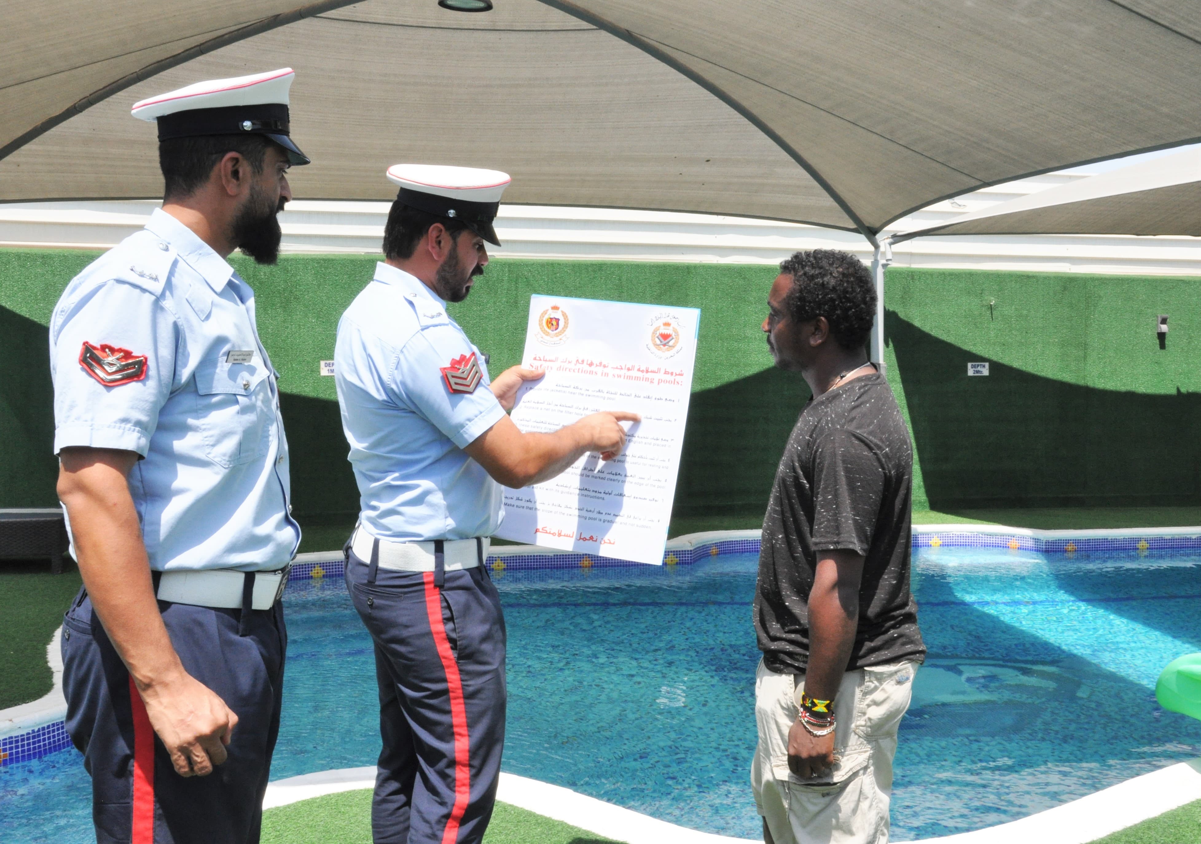 The Capital Governorate Police Directorate has carried out an awareness campaign targeting visitors to swimming pools, as part of its ongoing efforts to promote public safety and raise awareness among the public.