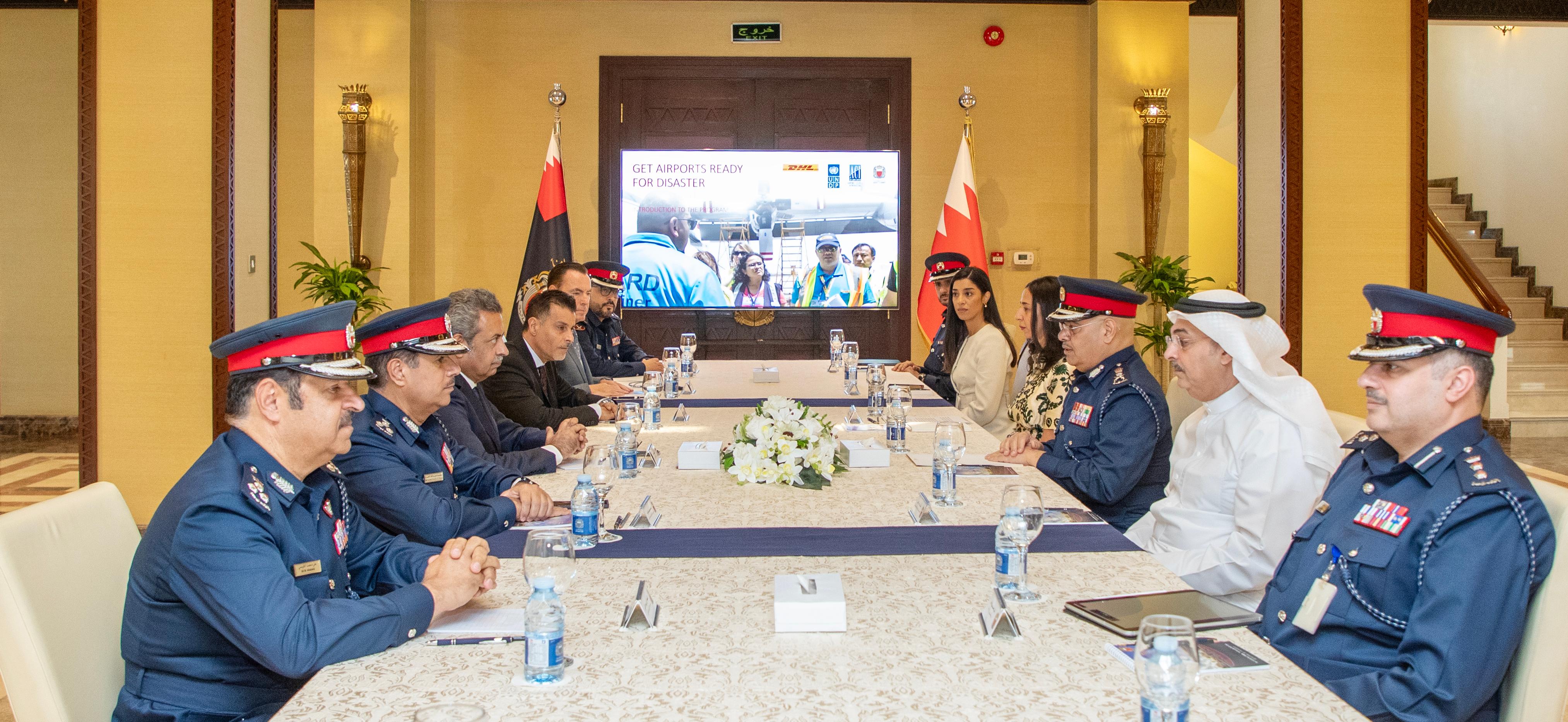 Per the directives of His Excellency Interior Minister General Shaikh Rashid bin Abdullah Al Khalifa, Chairman of the Civil Defence Council, the Chief of Public Security, Lt-General Tariq Al Hassan, Chairman of the National Committee for Civil Emergency Management, officially launched the first phase of the “Get Airports Ready for Disaster (GARD)” project. The launch ceremony was held in collaboration with the Ministry of Transportation and Telecommunications, Bahrain Airport Company, the United Nations Development Programme (UNDP), and global logistics leader DHL.