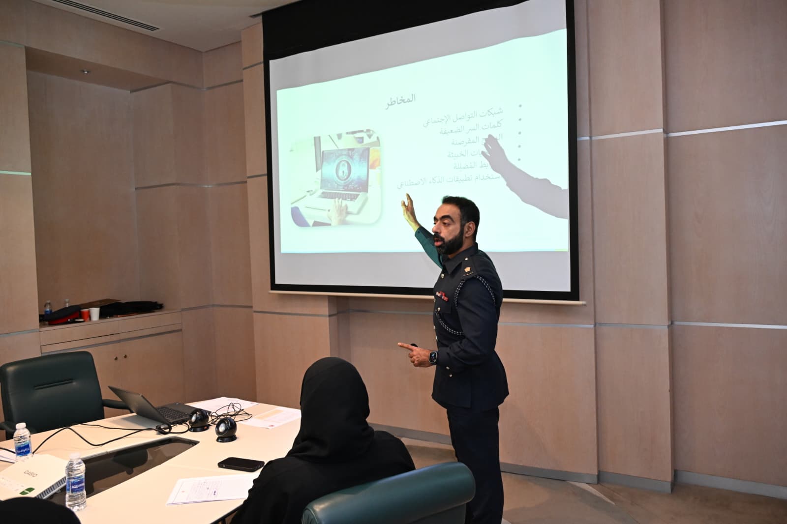 The lecture was delivered by Major Hamad Hilal Al Sadoun from the Royal Academy of Police. It aimed to raise the level of awareness among a number of members of the Supreme Judicial Council regarding the importance of information security and the risks associated with cyberspace.