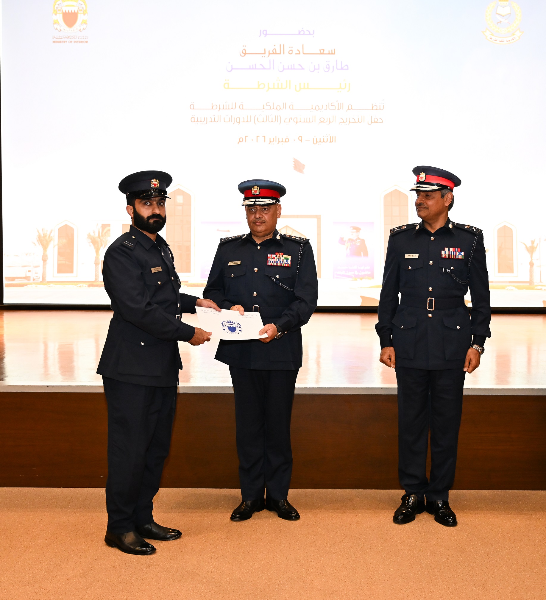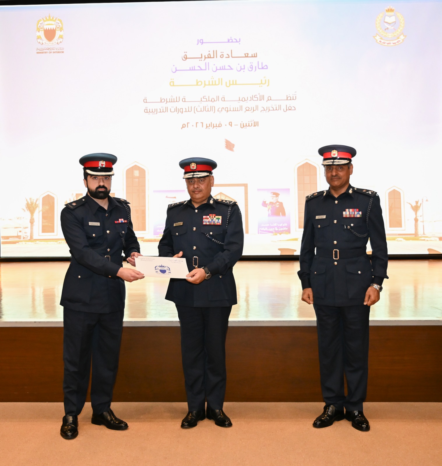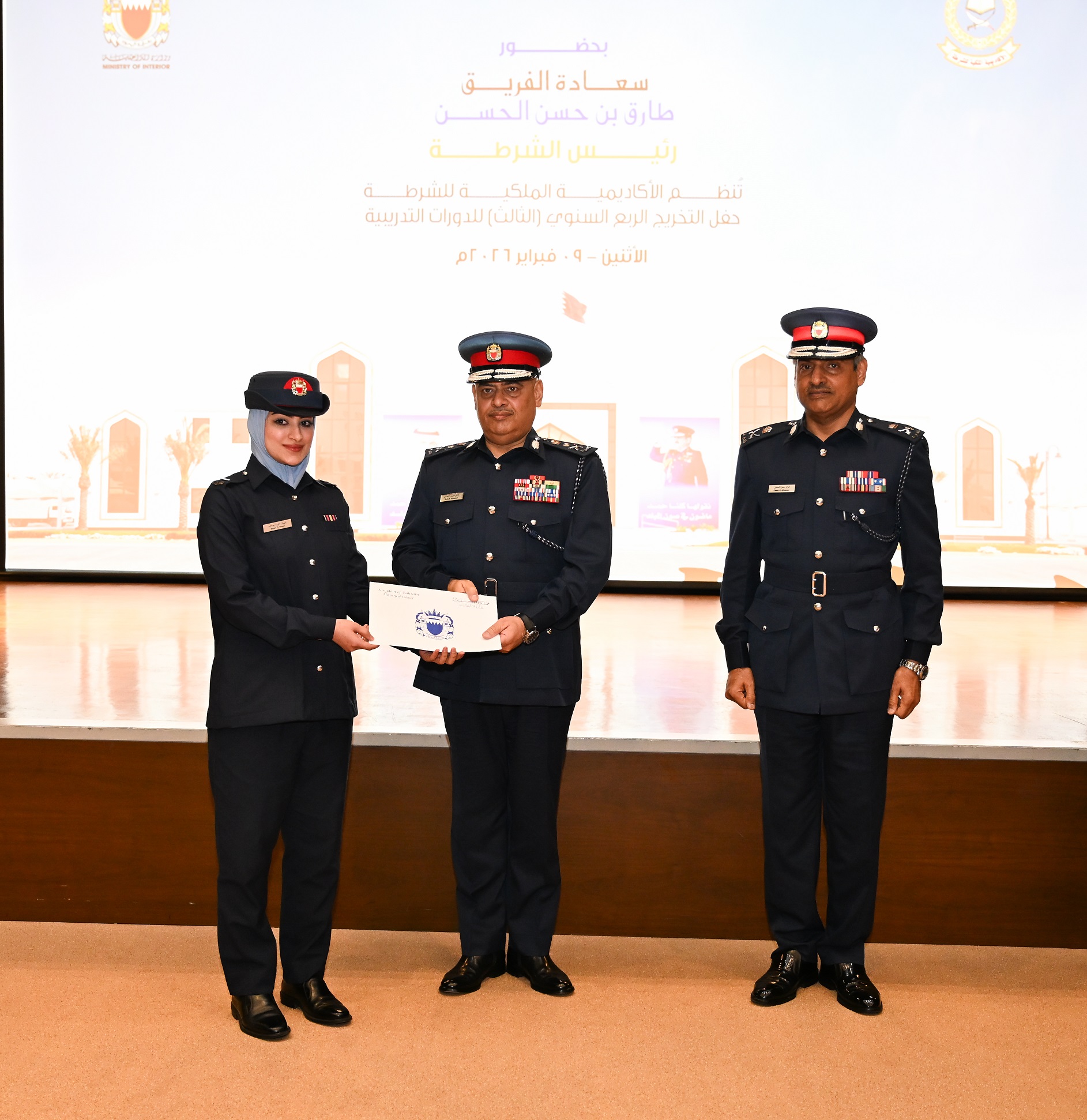 The Chief of Police, Lt-General Tariq Al Hassan, Chairman of the Scientific Council of the Royal Academy of Police, attended the graduation ceremony of 149 participants from a number of the academy’s training courses, in the presence of senior officers and officials from the Ministry of Interior.