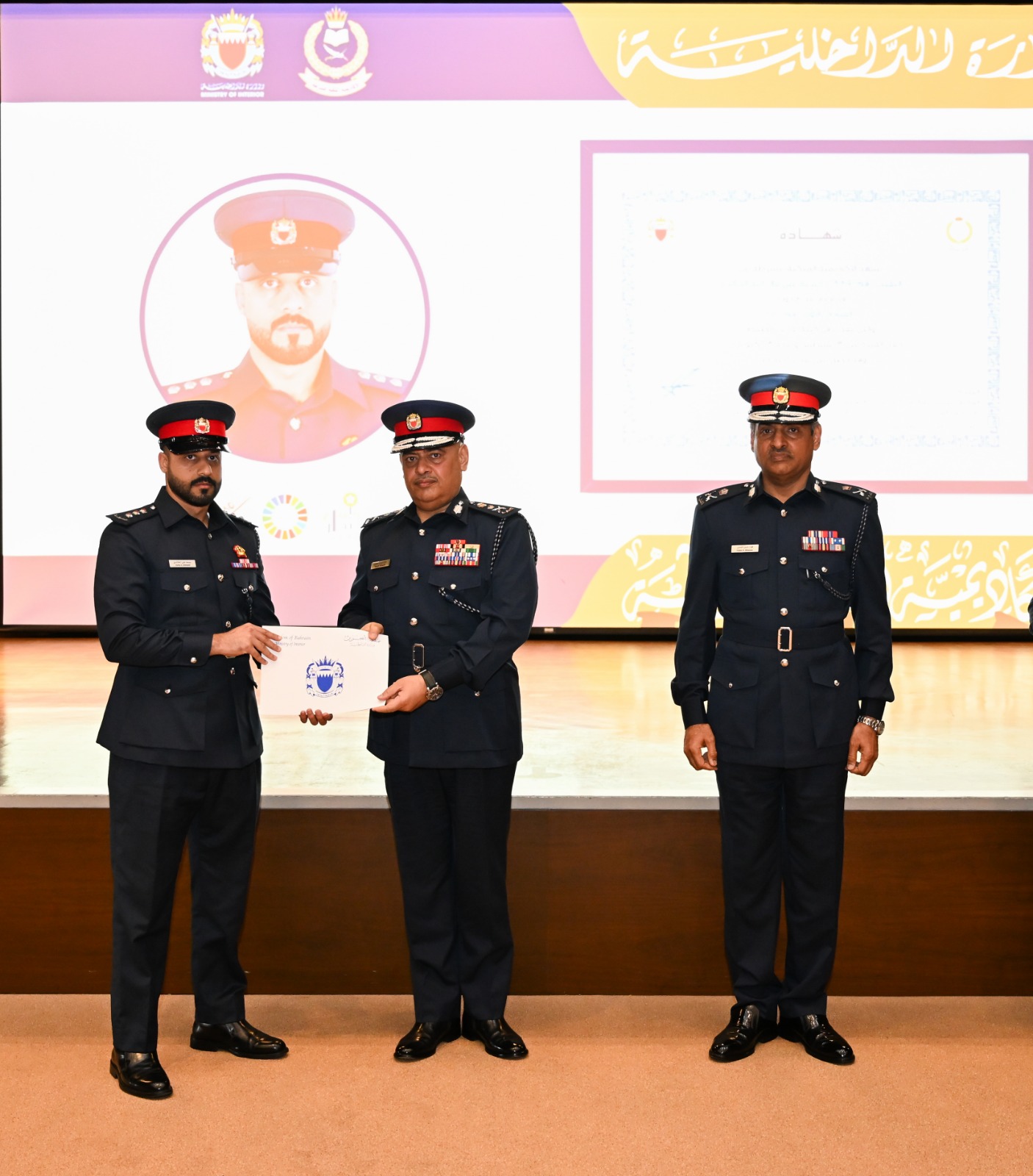 On the occasion, the Chief affirmed that the courses fall within the framework of His Excellency the Interior Minister General Shaikh Rashid bin Abdullah Al Khalifa's keenness to invest in human capital and enhance professional and specialised competencies. He commended the graduates' advanced level, reflecting seriousness, discipline, and a commitment to achieving the highest standards of police performance. He noted that continued training and qualification constitute a fundamental pillar for developing the security work system, enhancing readiness, and keeping pace with developments and changes across various fields.