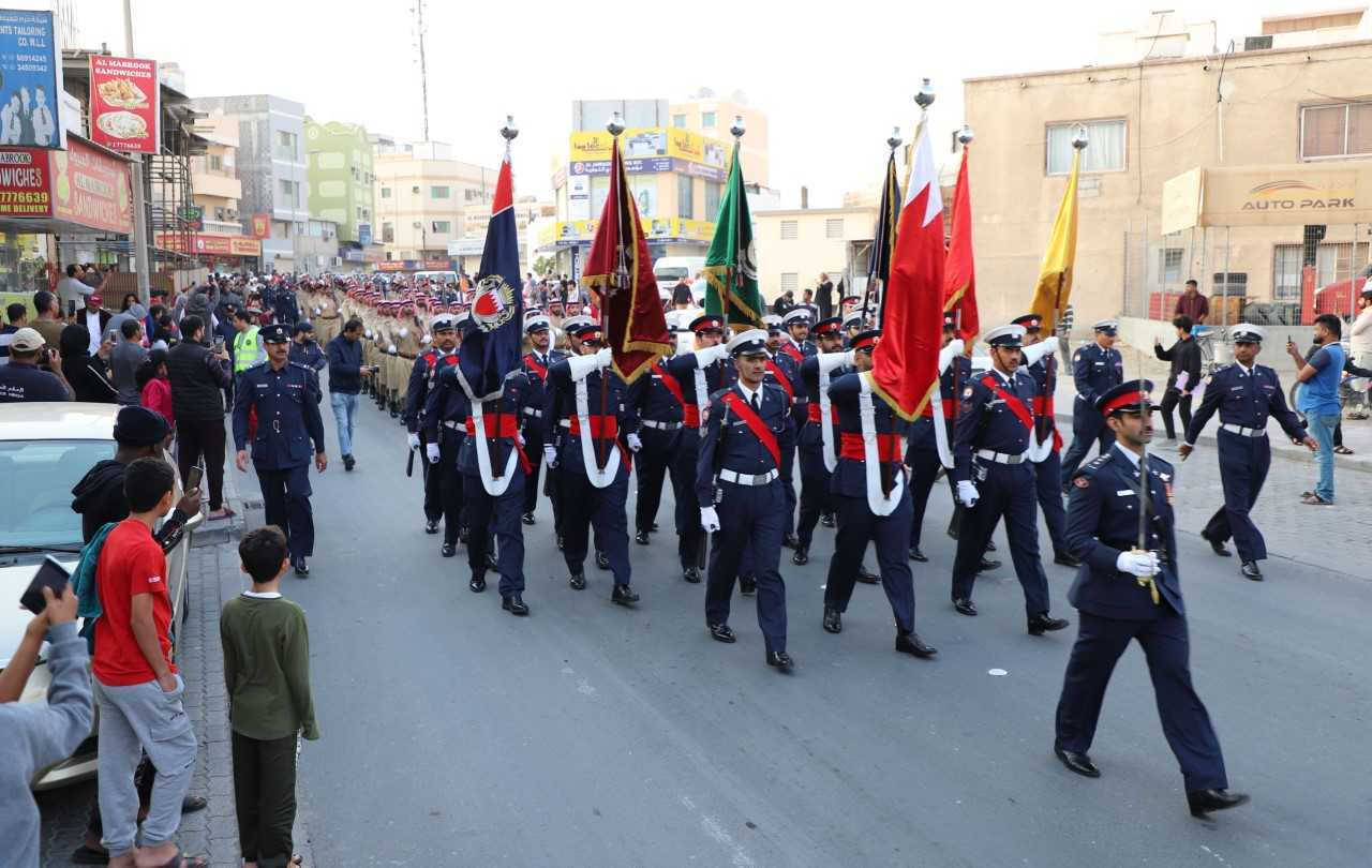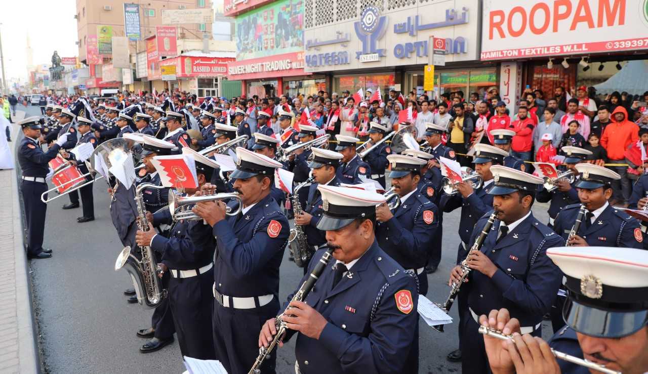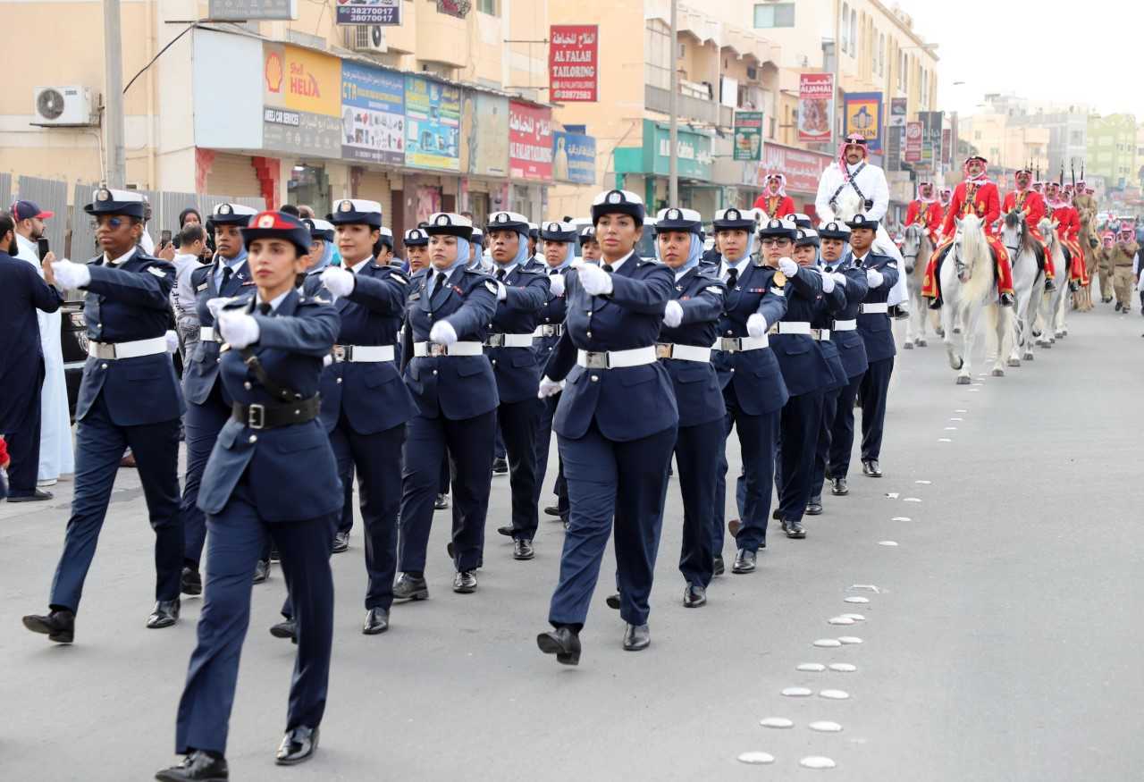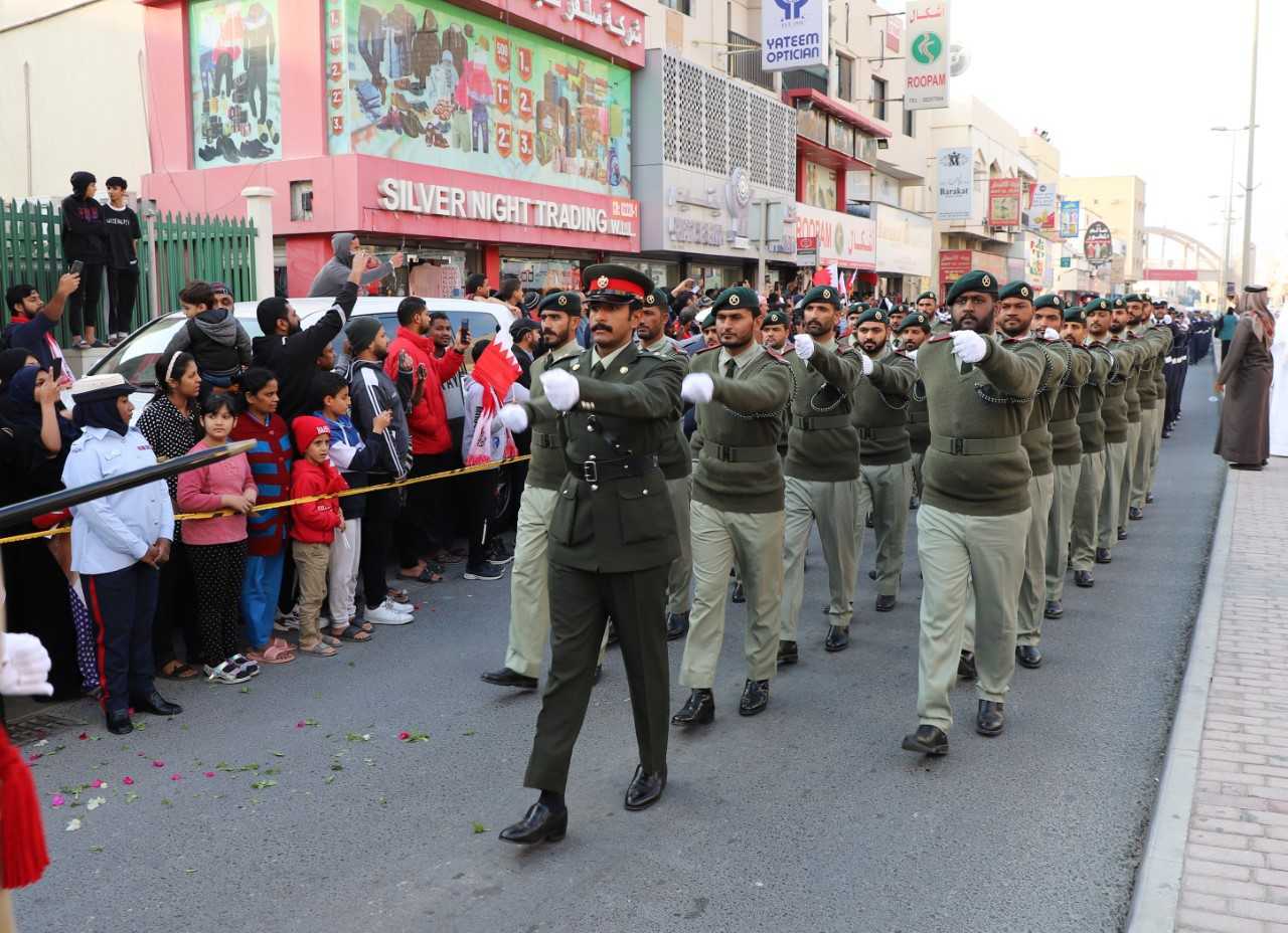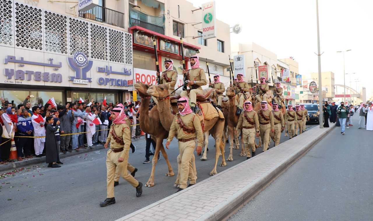 بمناسبة احتفالات مملكة البحرين بأعيادها الوطنية احياء لذكرى قيام الدولة البحرينية الحديثة في عهد المؤسس أحمد الفاتح كدولة عربية مسلمة عام 1783 ميلادية وذكرى تولي حضرة صاحب الجلالة الملك المعظم حفظه الله ورعاه لمقاليد الحكم، نظمت وزارة الداخلية بحضور سمو الشيخ خليفة بن علي بن خليفة آل خليفة محافظ المحافظة الجنوبية، استعراضا ميدانيا وجماهيريا ، بمشاركة عدد من إدارات وزارة الداخلية والفرقة الموسيقية للشرطة وشرطة الخيالة بالإضافة إلى فرقة الهجانة