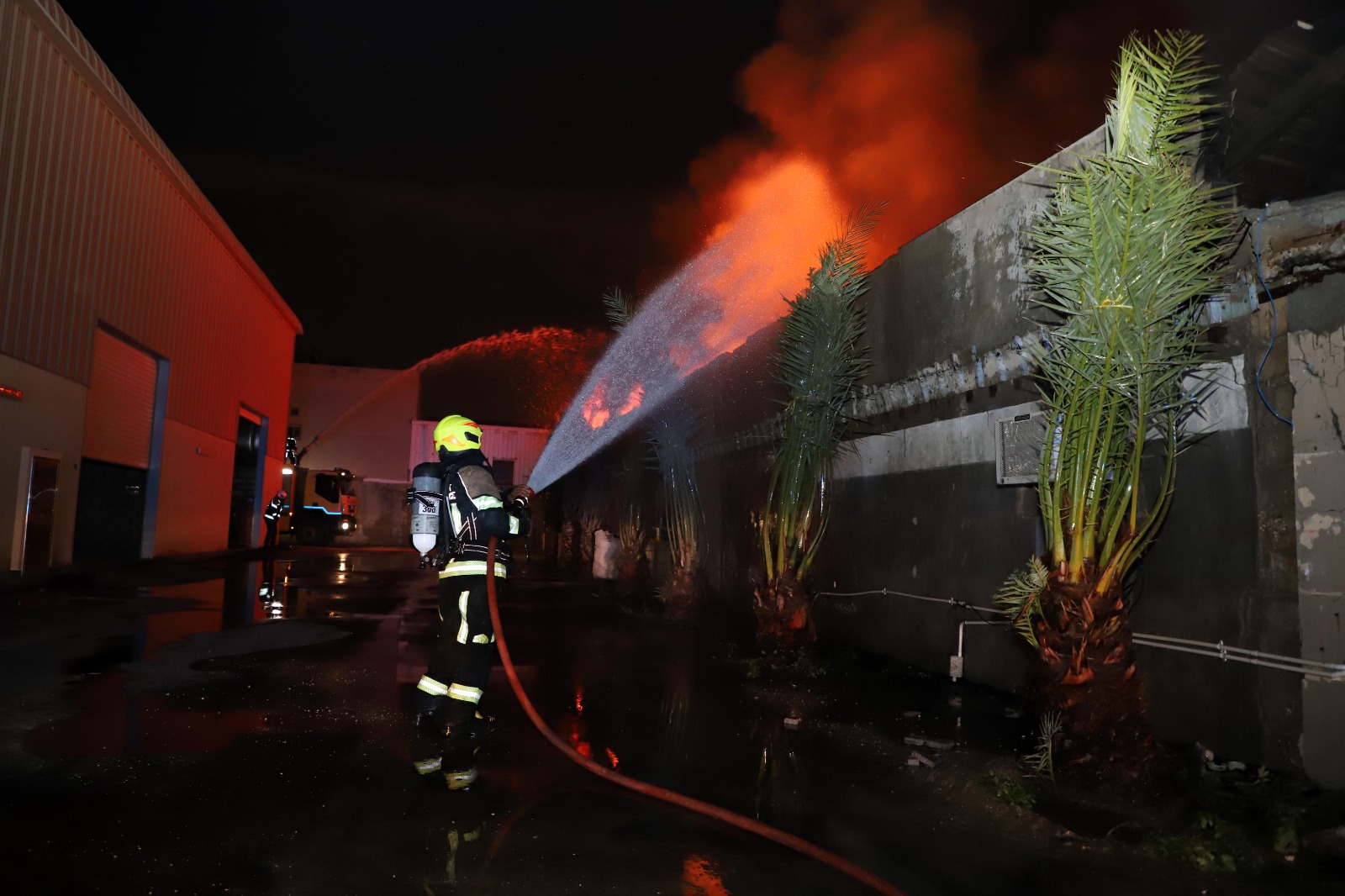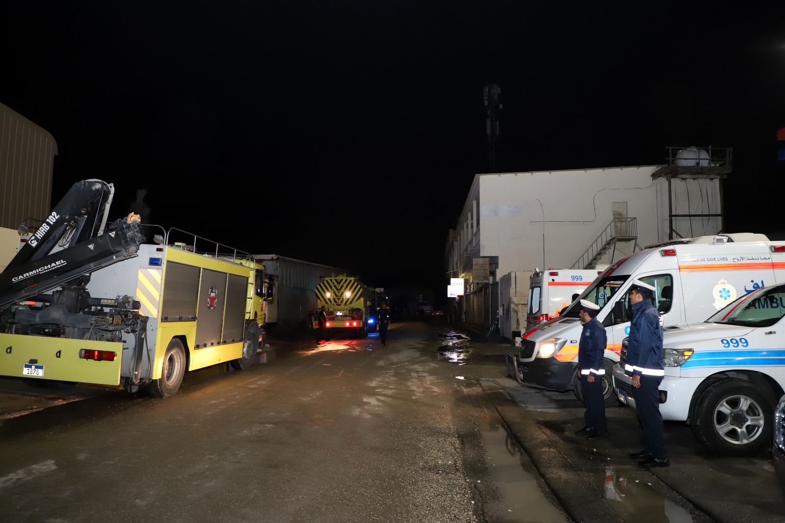 وأوضح العميد علي محمد الحوطي مدير عام الإدارة العامة للدفاع المدني أن غرفة العمليات الرئيسية، كانت قد تلقت بلاغاً بالحريق الساعة 11:12 مساءً، حيث توجهت فرق الدفاع المدني إلى الموقع والتي وصلت خلال وقت قياسي من تلقي البلاغ وباشرت عمليات السيطرة على الحريق ومنع انتشاره ووصوله إلى المصانع المجاورة.