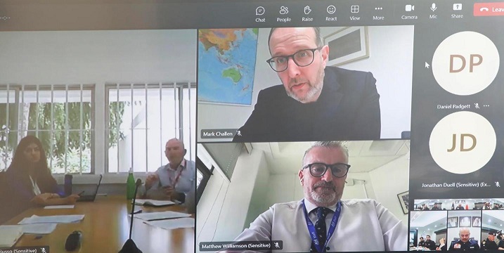 عقد فريق العمل الأمني المشترك بين وزارتي الداخلية في مملكة البحرين والمملكة المتحدة اجتماعا عبر تقنية الاتصال المرئي برئاسة الفريق طارق بن حسن الحسن رئيس الأمن العام والسيد مارك تشالين رئيس تطوير الكفاءة الدولية بوزارة الداخلية البريطانية وذلك بحضور مساعد رئيس الأمن العام لشؤون العمليات والتدريب ومدير عام الإدارة العامة لتنفيذ الاحكام والعقوبات البديلة وعدد من ممثلي الجهات الأمنية في البلدين.