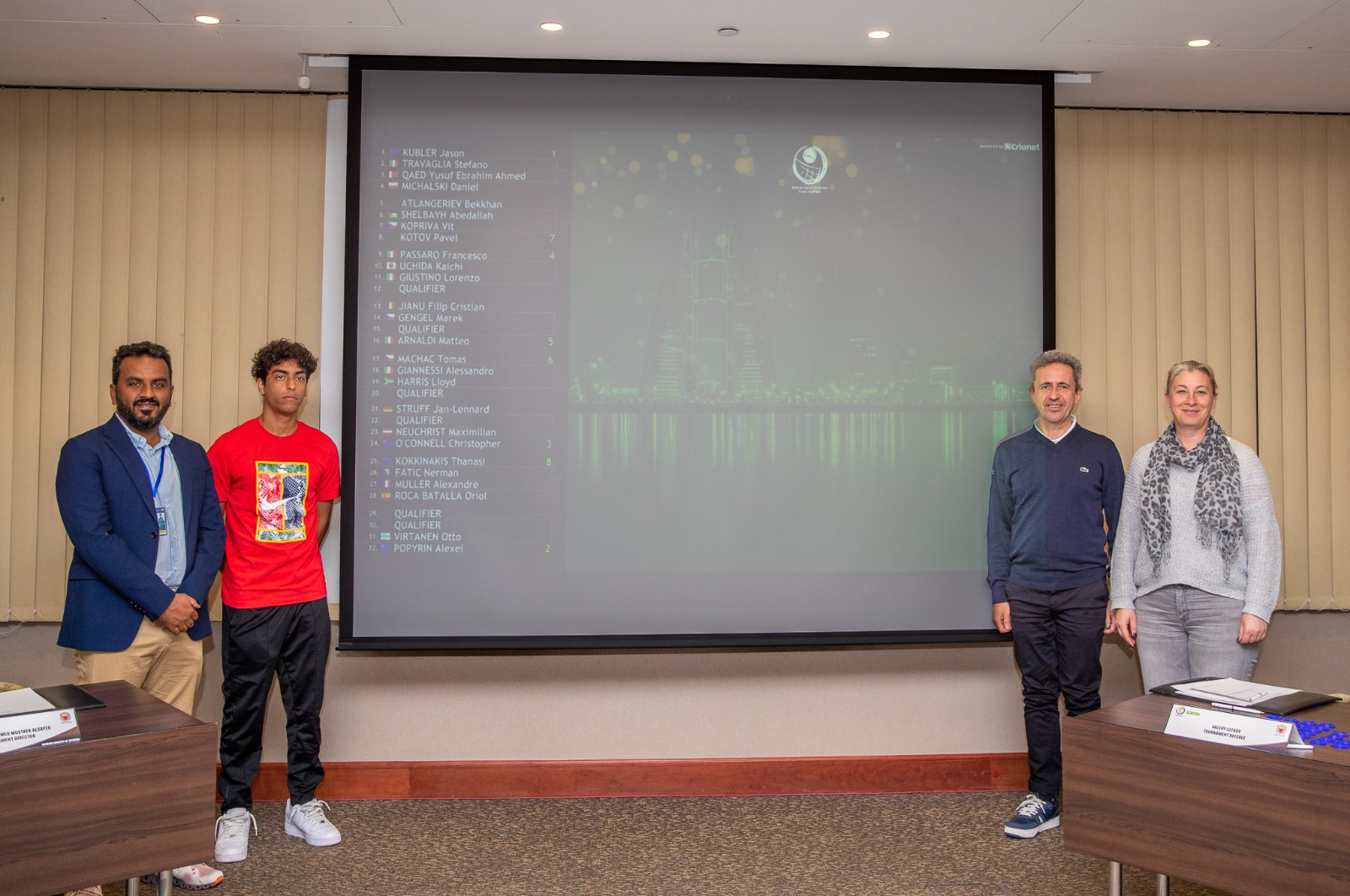 وستشهد منافسات التصفيات 16 مواجهة من أبرزها اللقاء الذي سيجمع كلاً من الأسترالي جاسون كوبلر والإيطالي ستيفانو ترافيليا، يلتقي البحريني يوسف قائد منافسه البولندي دانييل ميشاليسكي، فيما يتواجه الروسي بيكان التانرييف مع الأردني عبدالله شلباية، بالإضافة إلى مواجهة قوية بين الأسترالي تاناسي كوكيناكيس والبوسني نيرمان فاتيش.