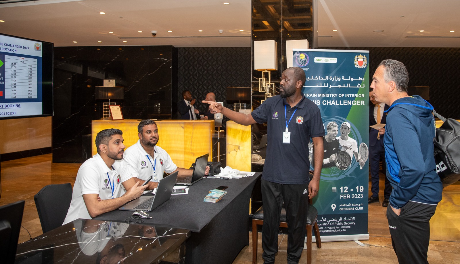 هذا وأشار رئيس الاتحاد الرياضي للأمن العام رئيس اللجنة التنظيمية لبطولة وزارة الداخلية تشالنجر للتنس العقيد خالد الخياط أنه تنفيذاً لتوجيهات الفريق أول معالي الشيخ راشد بن عبدالله آل خليفة وزير الداخلية ، ومتابعة من سعادة رئيس الأمن العام، تم الانتهاء من كافة الترتيبات اللازمة لاستضافة منافسات البطولة على ملاعب التنس بنادي ضباط الأمن العام، موضحاً أنه تم تجهيز ملاعب النادي بمواصفات عالمية مطابقة للتصنيف الجديد للبطولة 125.