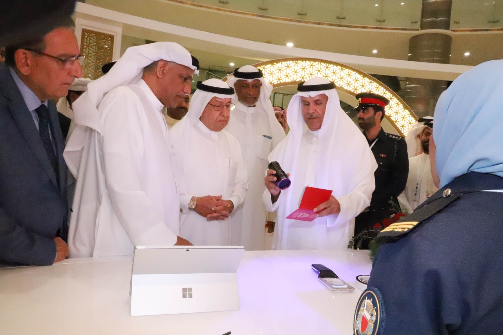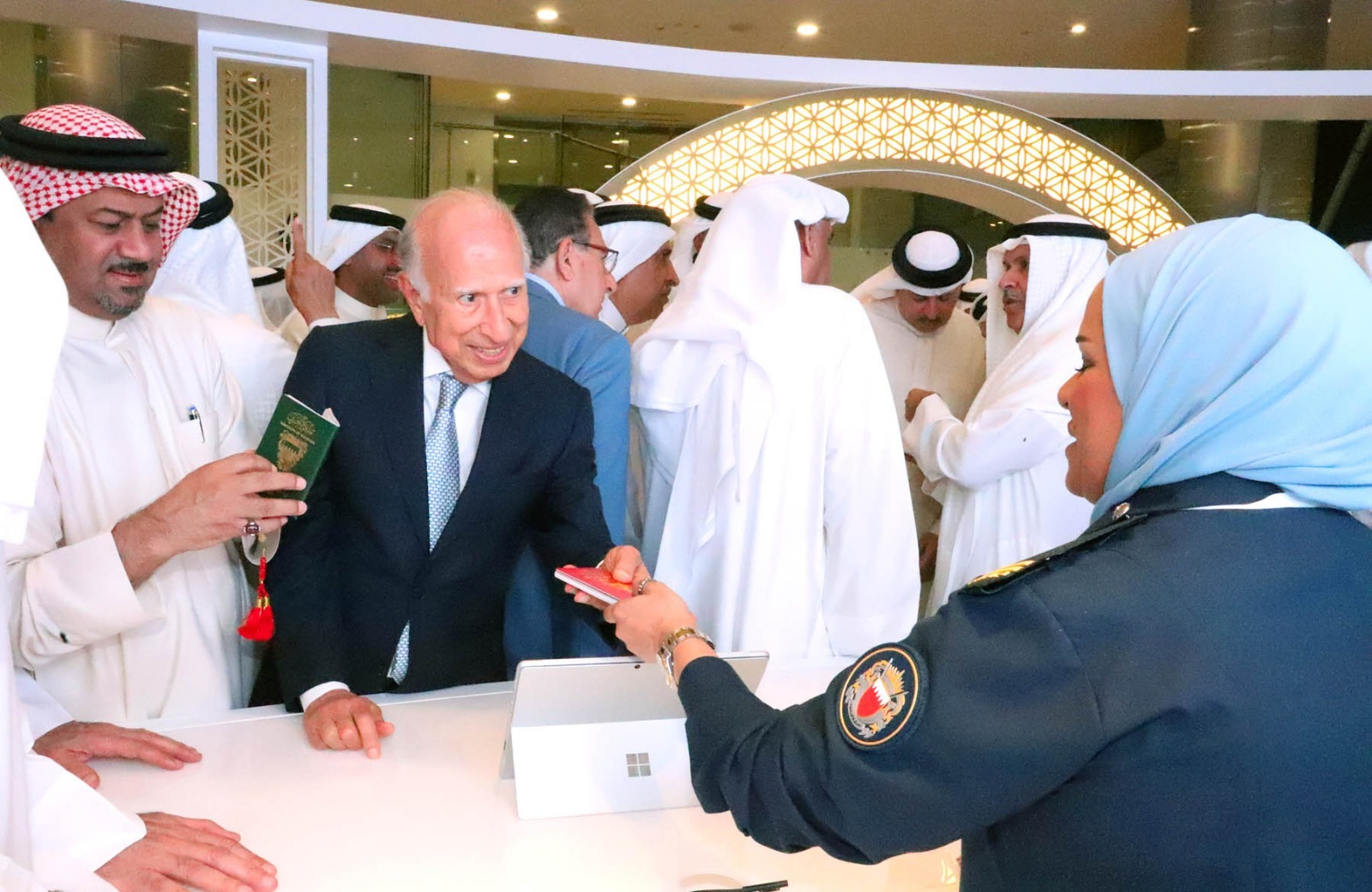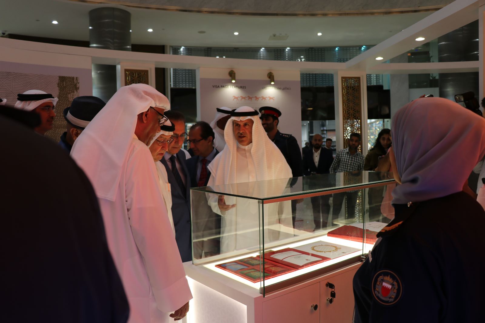 افتتح معالي الشيخ هشام بن عبدالرحمن آل خليفة وكيل وزارة الداخلية لشؤون الجنسية والجوازات والإقامة المعرض المقام بمناسبة تدشين جواز السفر الالكتروني لمملكة البحرين ، وذلك في مجمع المودا مول خلال الفترة من 14-19 مارس الجاري .