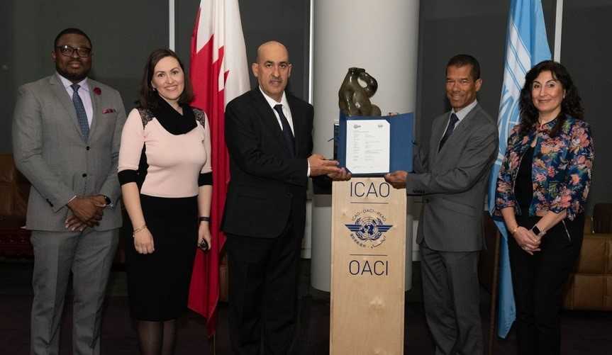 قام سعادة العميد عبدالعزيز عبدالرحمن الدوسري الوكيل المساعد للمنافذ والبحث والمتابعة بتسليم شهادة تصديق جهة الاصدار (CSCA) لجواز السفر الإلكتروني لمملكة البحرين لمركز التصديق الإلكتروني للمنظمة الدولية للطيران المدني "إيكاو" ، وذلك خلال حفل مراسم تدشين مفاتيح جواز السفر الالكتروني الذي أقيم بمقر المنظمة بمدينة مونتريال الكندية.
