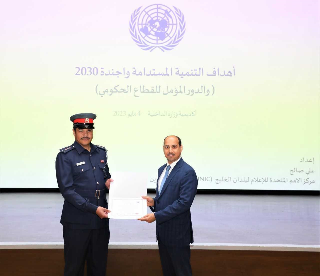 وتطرقت المحاضرة، والتي ألقاها الأستاذ علي صالح مدير مركز الأمم المتحدة للإعلام لدول الخليج بالإنابة بمقر الأكاديمية الملكية للشرطة، إلى أهمية التنمية المستدامة في الحفاظ على الموارد الطبيعية وتطوير الاقتصاد والمجتمع بشكل مستدام، حيث تم تسليط الضوء على أهداف التنمية المستدامة الـ 17 المتفق عليها من قبل الأمم المتحدة في عام 2015، وشرح كيفية تحقيق هذه الأهداف على المستوى المحلي والعالمي.