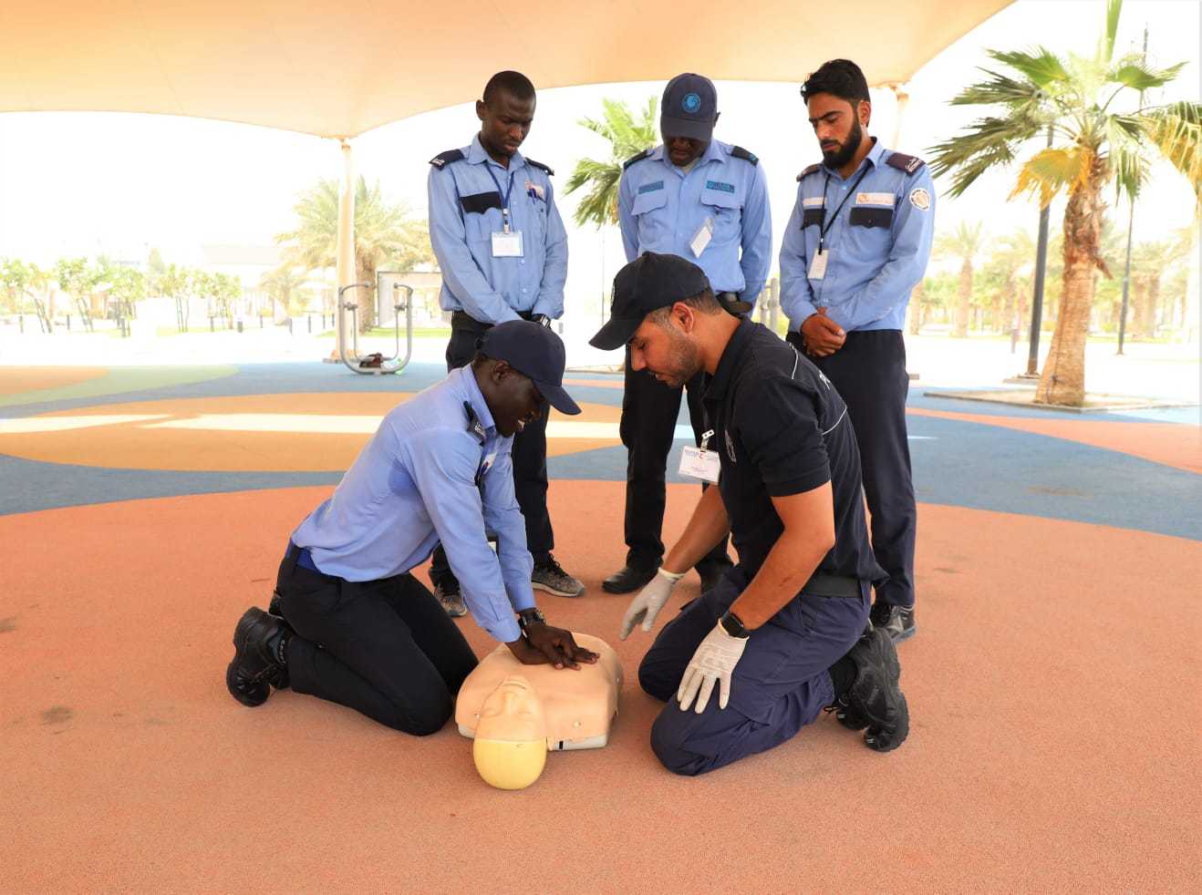 وتضمنت هذه الزيارات تقديم محاضرات توعوية لحراس الأمن حول الأمن والسلامة ومفهوم الإسعافات الأولية وأهميتها في حالات الطوارئ والحوادث المختلفة وكيفية إنقاذ الأرواح بالإضافة إلى كيفية اتباع الإجراءات الأساسية عند تقديم الإسعافات الأولية وكيفية استخدام طفايات الحريق بالإضافة إلى طريقة التعامل مع الجمهور.