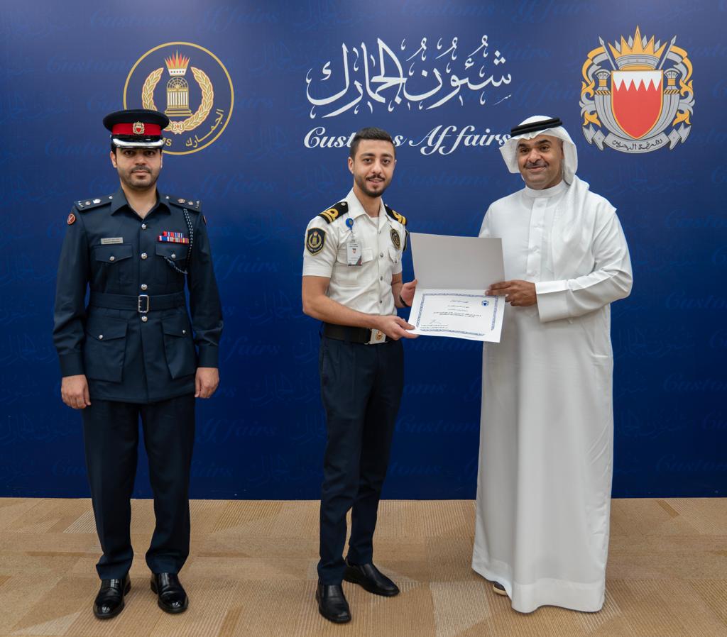 بحضور الشيخ تركي بن دعيج آل خليفة مدير عام الإدارة العامة للموارد ونظم المعلومات بشئون الجمارك، أقام معهد التدريب الجمركي حفل تخريج المشاركين في برنامج التفتيش الجمركي، والذي يهدف إلى إكساب ضابط الجمارك المعارف والمهارات اللازمة في مجال التفتيش للقيام بمتطلبات مهنة التفتيش، حيث تم إعداد هذا البرنامج من قبل إدارة التدريب والتطوير بشئون الجمارك ووفقاً للسياسات والإجراءات المتبعة في شئون الجمارك في مجال التفتيش الجمركي.