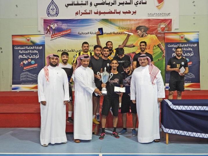 وتوجه مدير عام الإدارة العامة للمباحث والأدلة الجنائية بالشكر إلى كافة الجهات التي ساهمت في نجاح البطولة وخروجها بالصورة التي لاقت استحسان الجميع ، متمثلة في الإدارة العامة للإعلام والثقافة الأمنية والاتحاد الرياضي للأمن العام وناديي الدير وسماهيج الرياضيين .