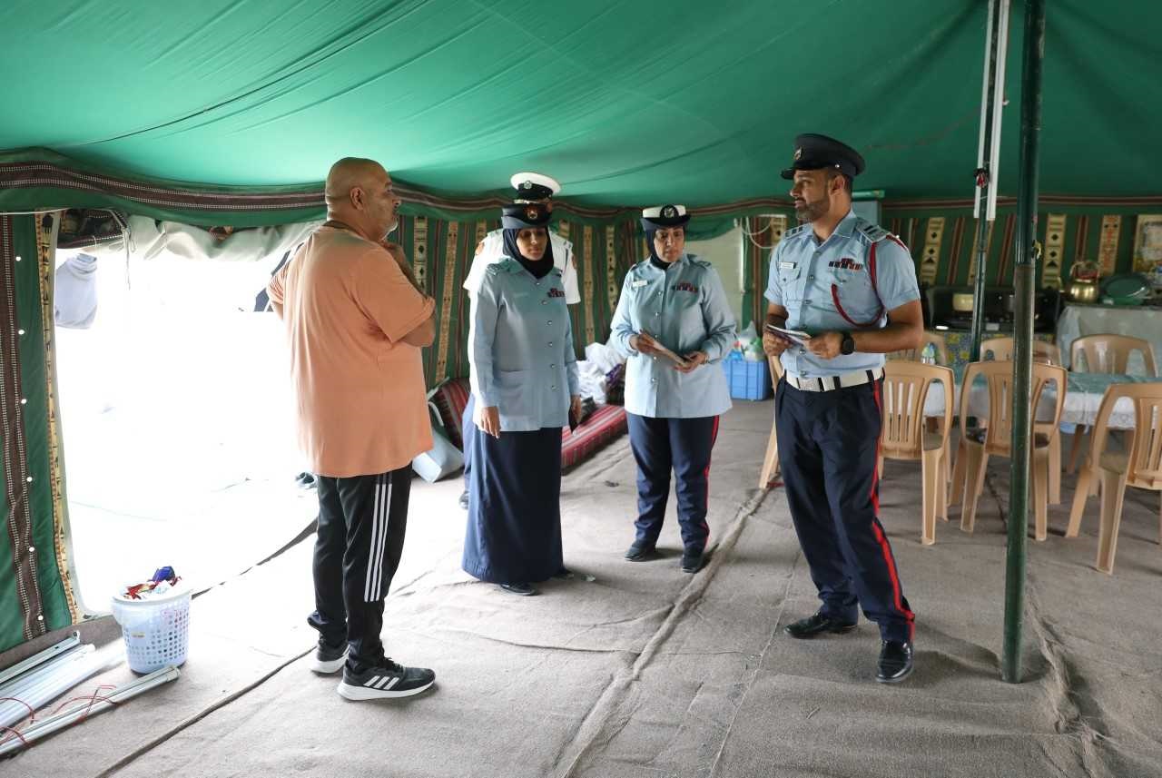 وقد قام الفريق المختص بإجراء زيارات ميدانية لتوعية مرتادي البر بإجراءات الامن والسلامة ، ومن بينها التأكد من تمديدات التوصيلات والأسلاك الكهربائية ، واتباع الطرق السليمة في استخدام المواد القابلة للاشتعال والمولدات الكهربائية وإشعال الفحم والخشب .