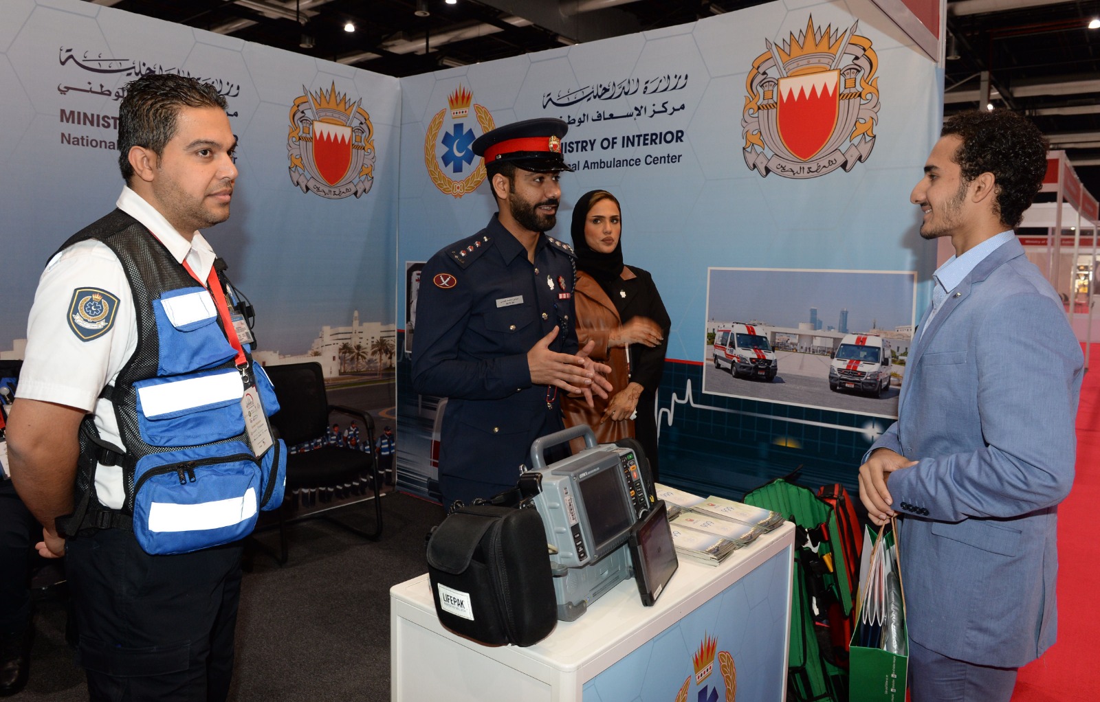 شارك مركز الإسعاف الوطني بوزارة الداخلية في مؤتمر ومعرض المنامة الدولي للصحة "المنامة هيلث 2023"، والذي افتتحه معالي الفريق الطبيب الشيخ محمد بن عبدالله آل خليفة رئيس المجلس الأعلى للصحة، بحضور ومشاركة وزارة الصحة والهيئة الوطنية لتنظيم المهن والخدمات الصحية.