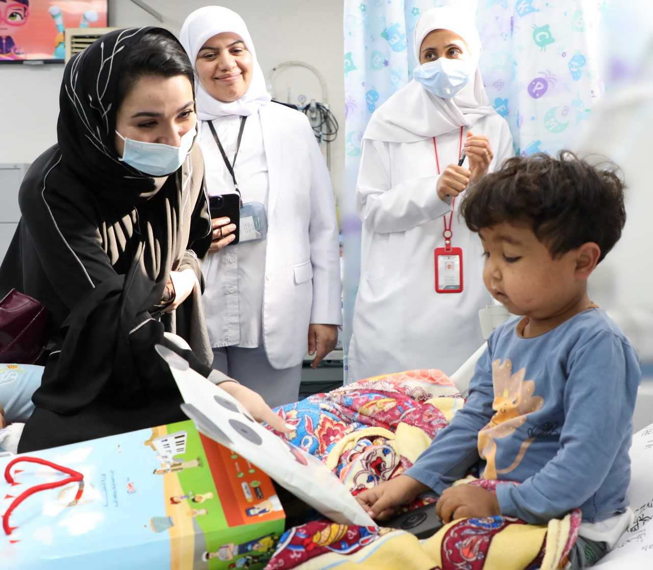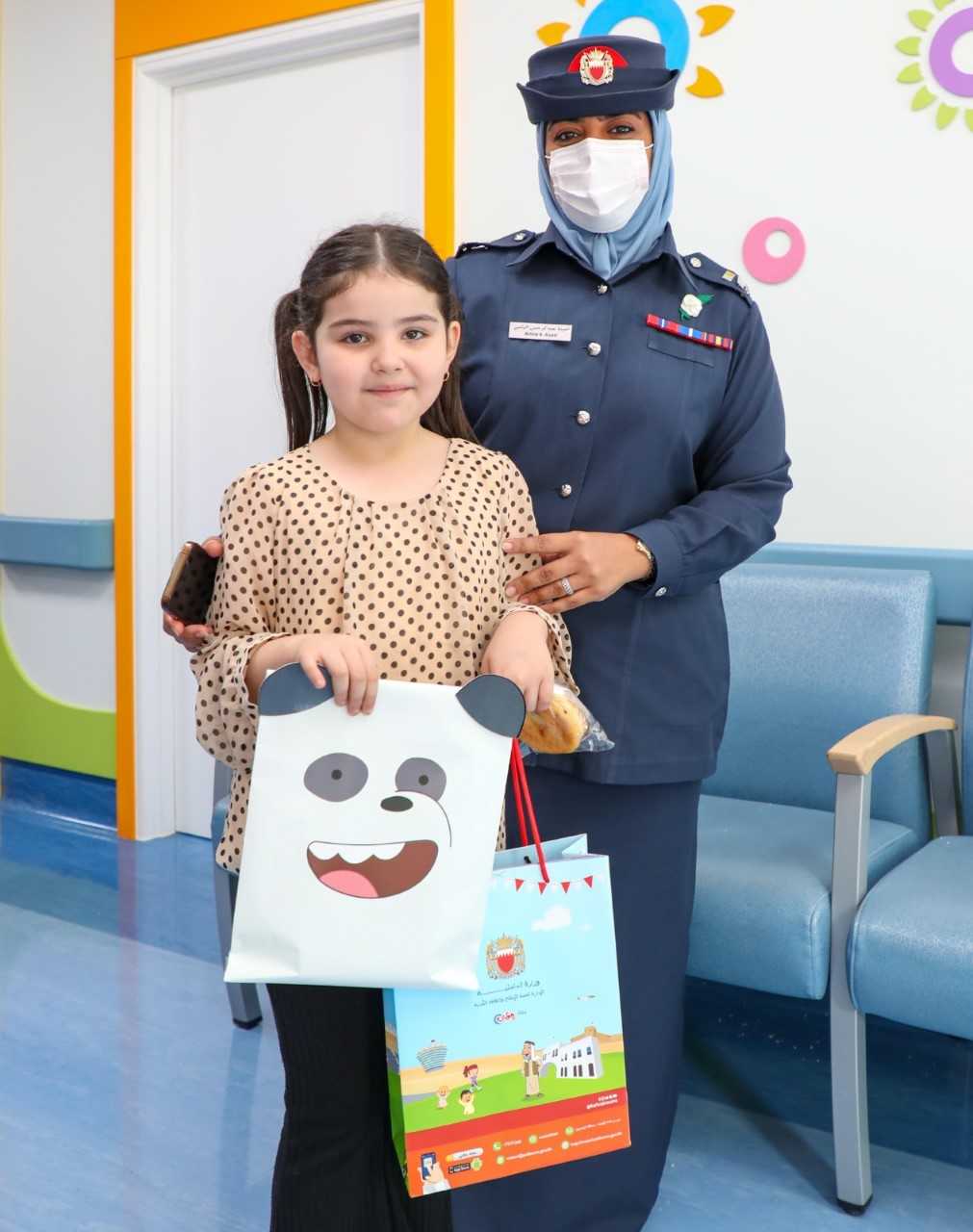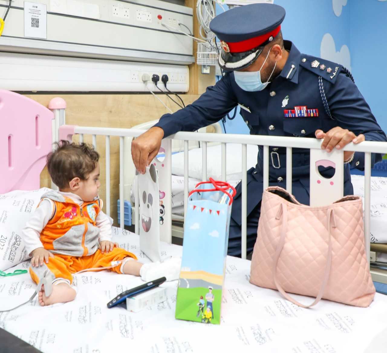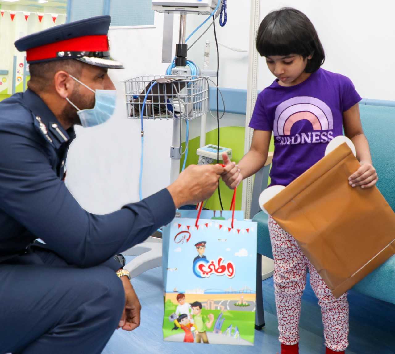 وقد تم توزيع مجلة وطني وتقديم الهدايا التذكارية للأطفال بهدف مشاركة الأطفال فرحة الأعياد الوطنية ويوم الشرطة ، ورسم البسمة على وجوههم وإضفاء البهجة والأمل في نفوسهم ، متمنياً لهم السلامة والشفاء العاجل ، فيما تم إقامة فعاليات ترفيهية ممتعة للأطفال بالتعاون مع طاقم المستشفى والمدرسة.