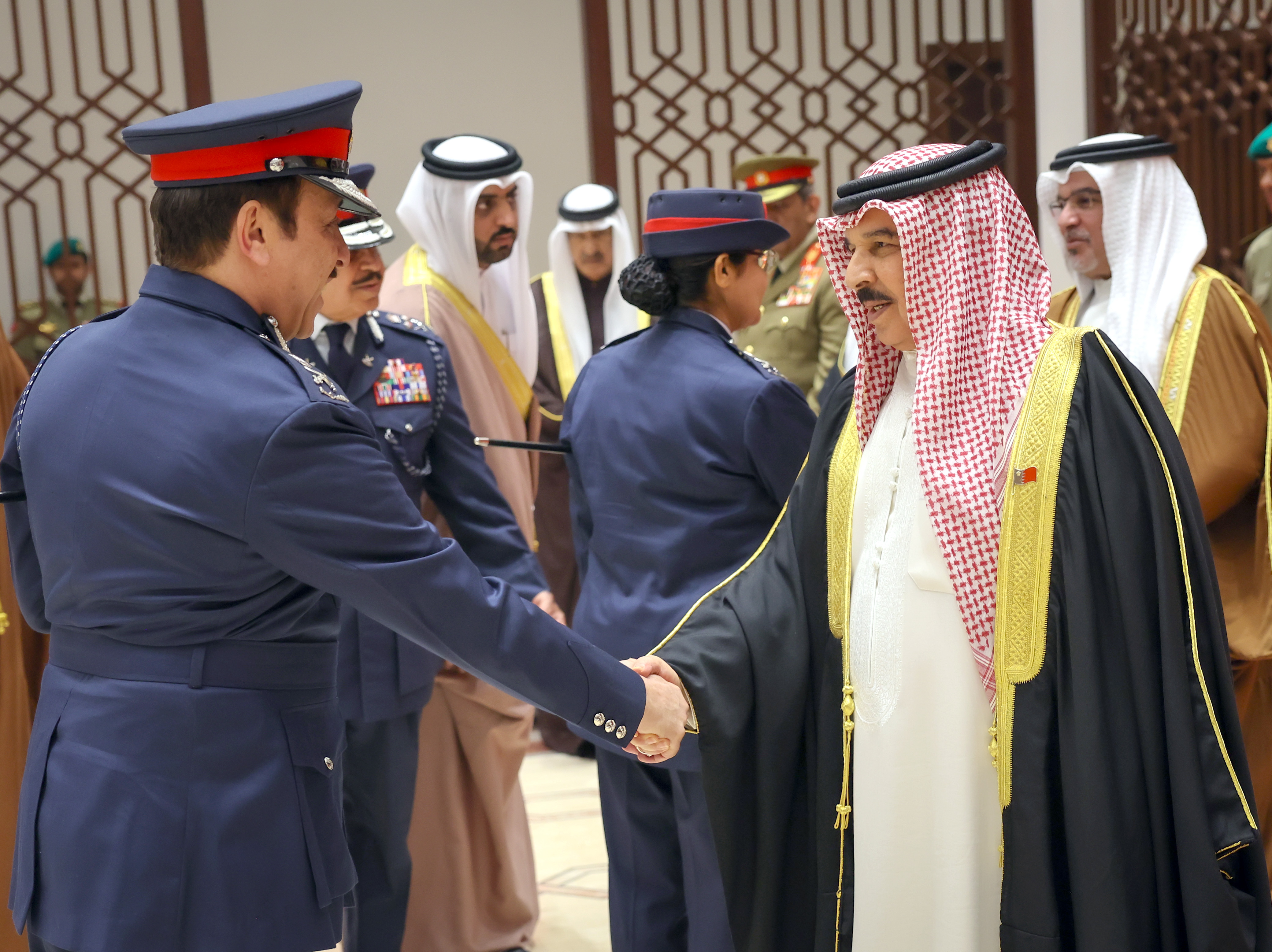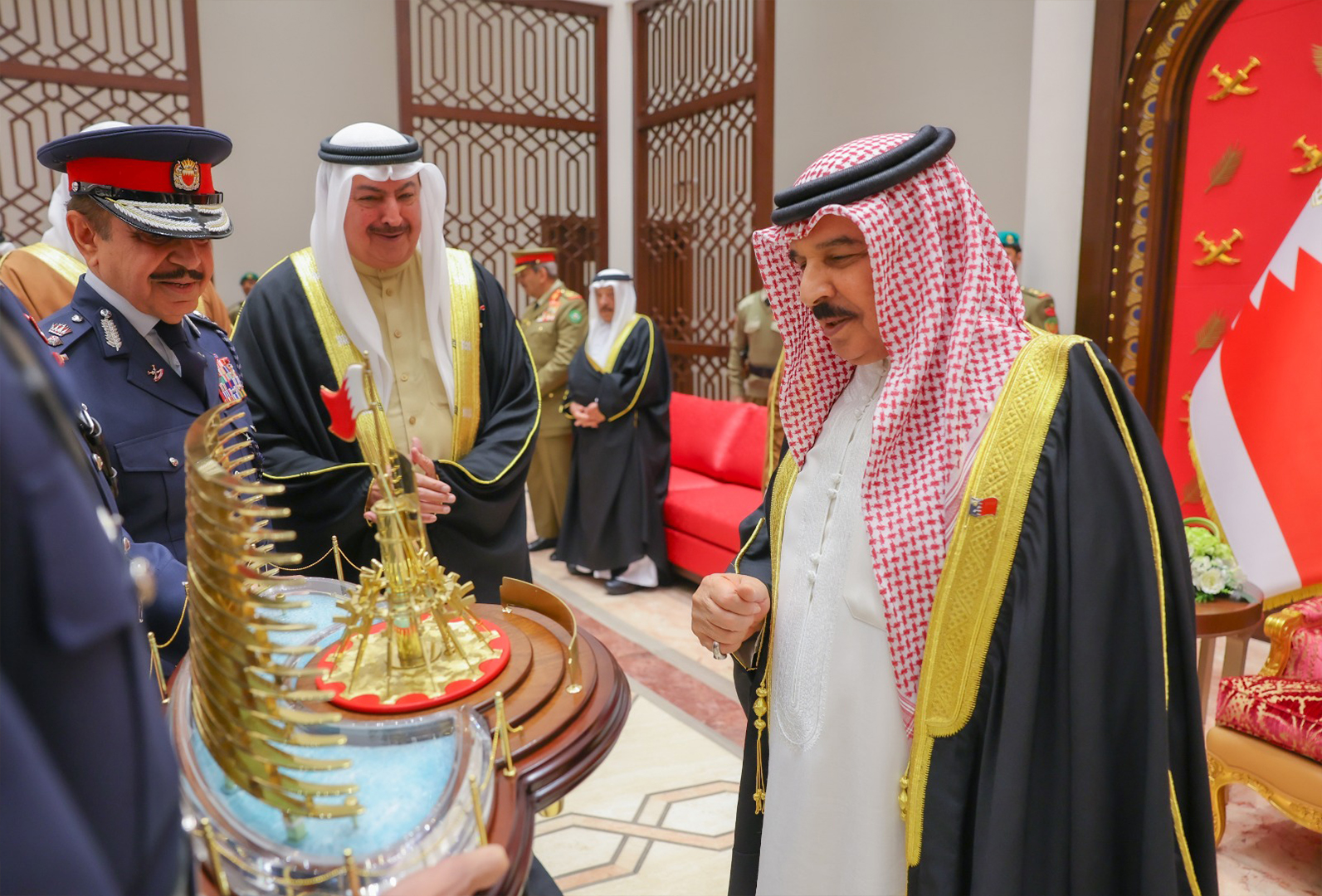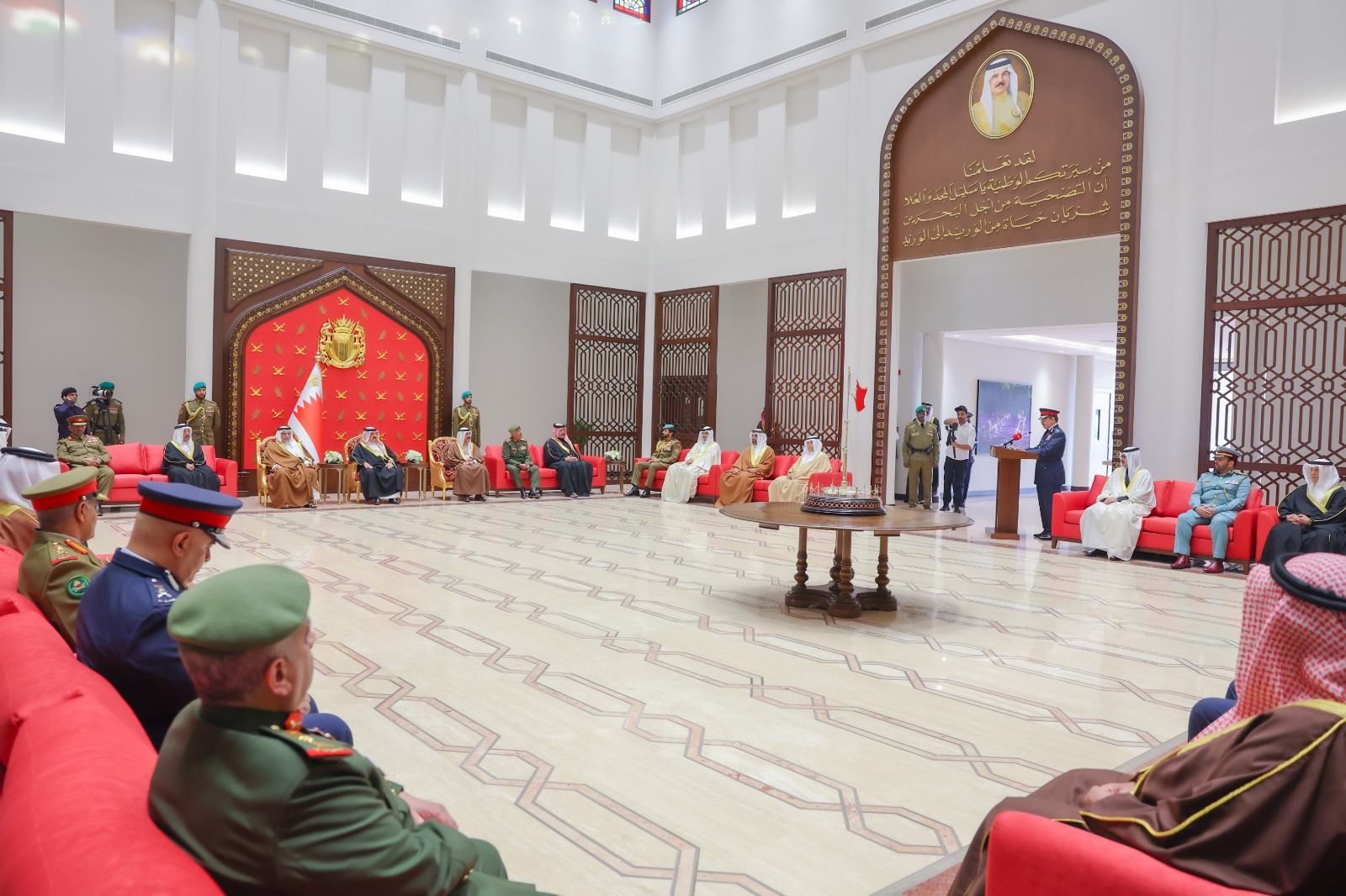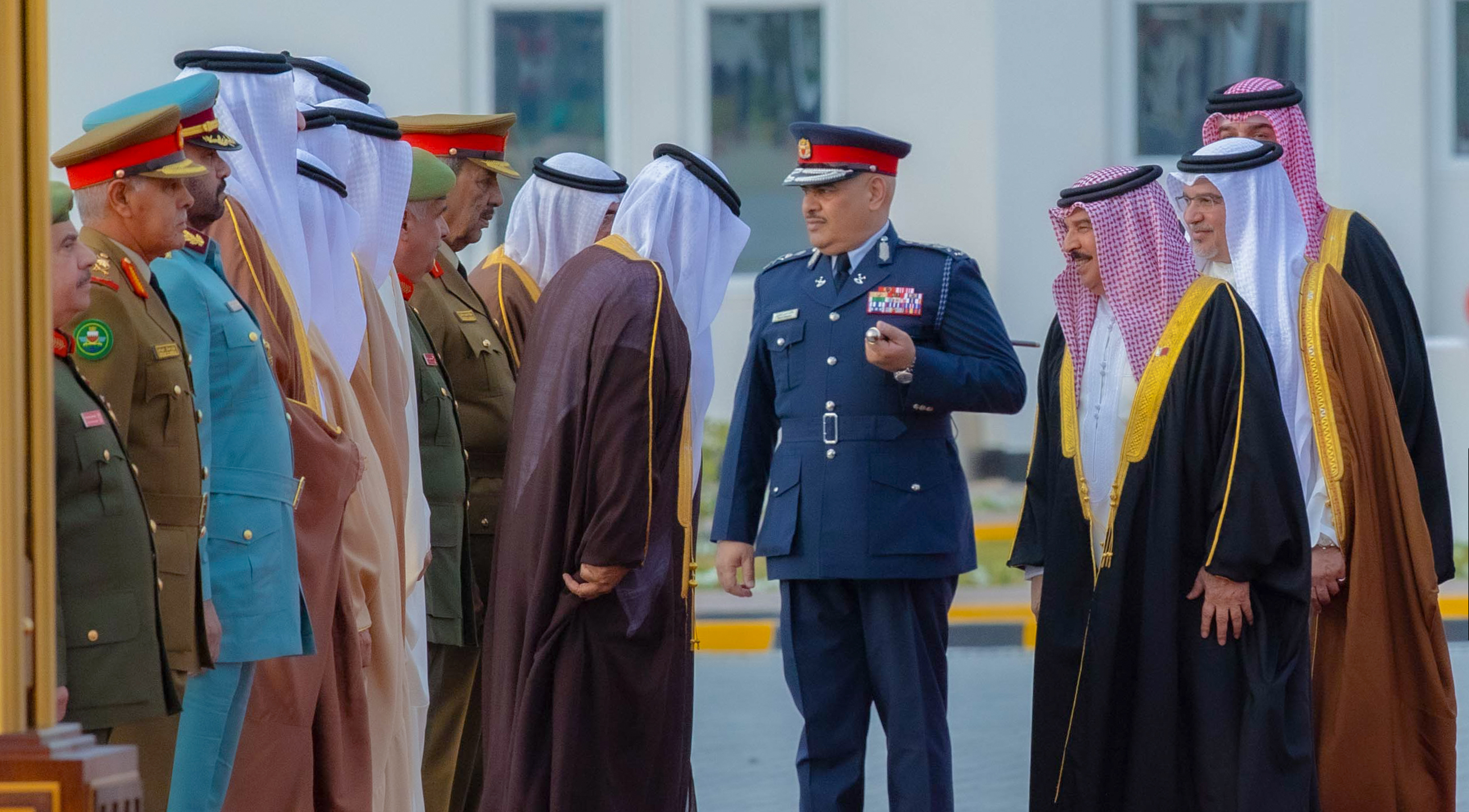 ولدى وصول جلالته، كان في الاستقبال الفريق أول معالي الشيخ راشد بن عبدالله آل خليفة وزير الداخلية، كما حضر الاحتفال عدد من أصحاب السمو والمعالي والسعادة من كبار المسؤولين .