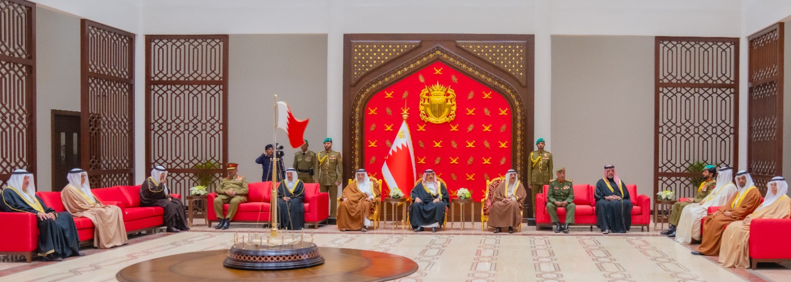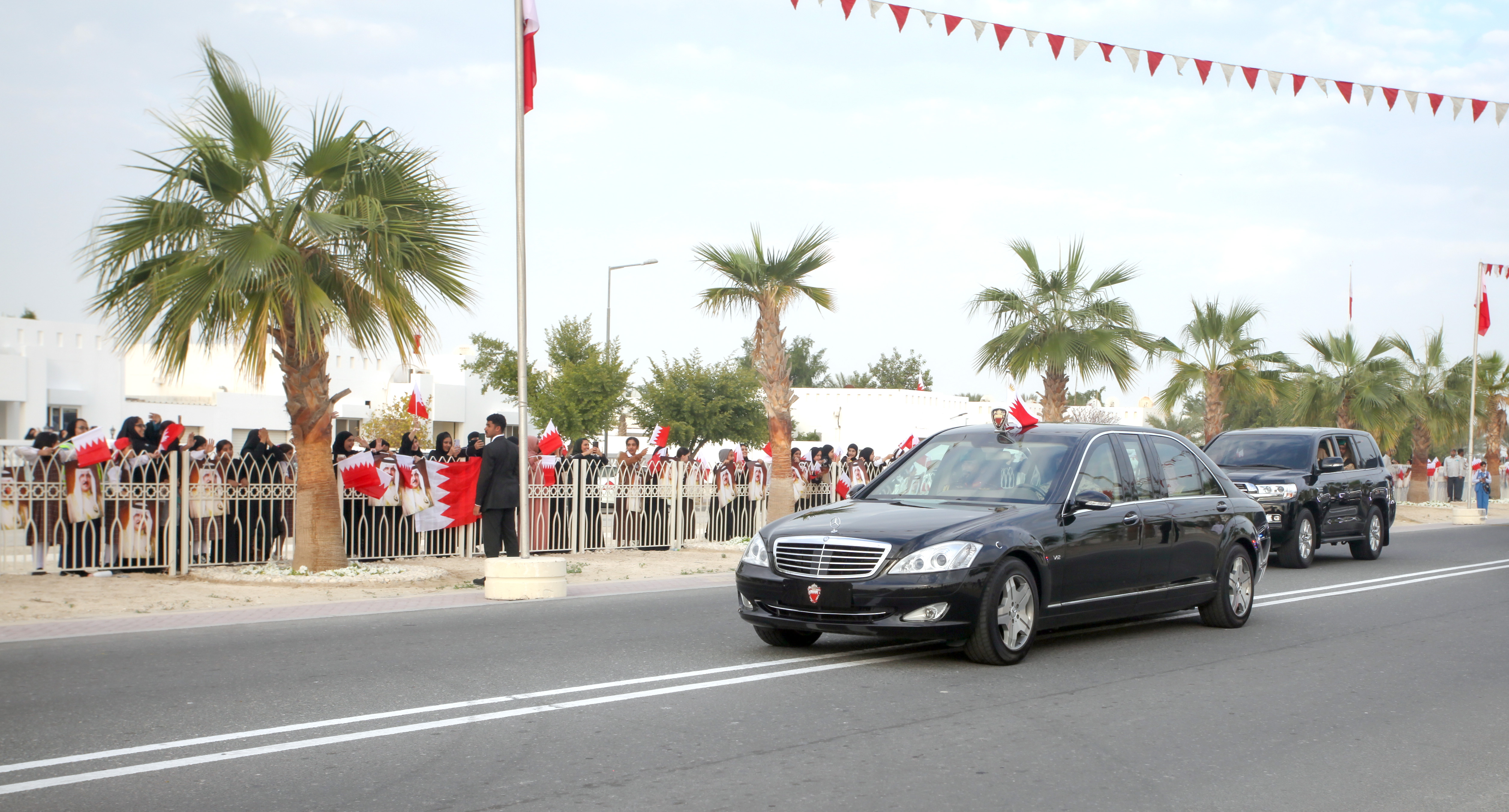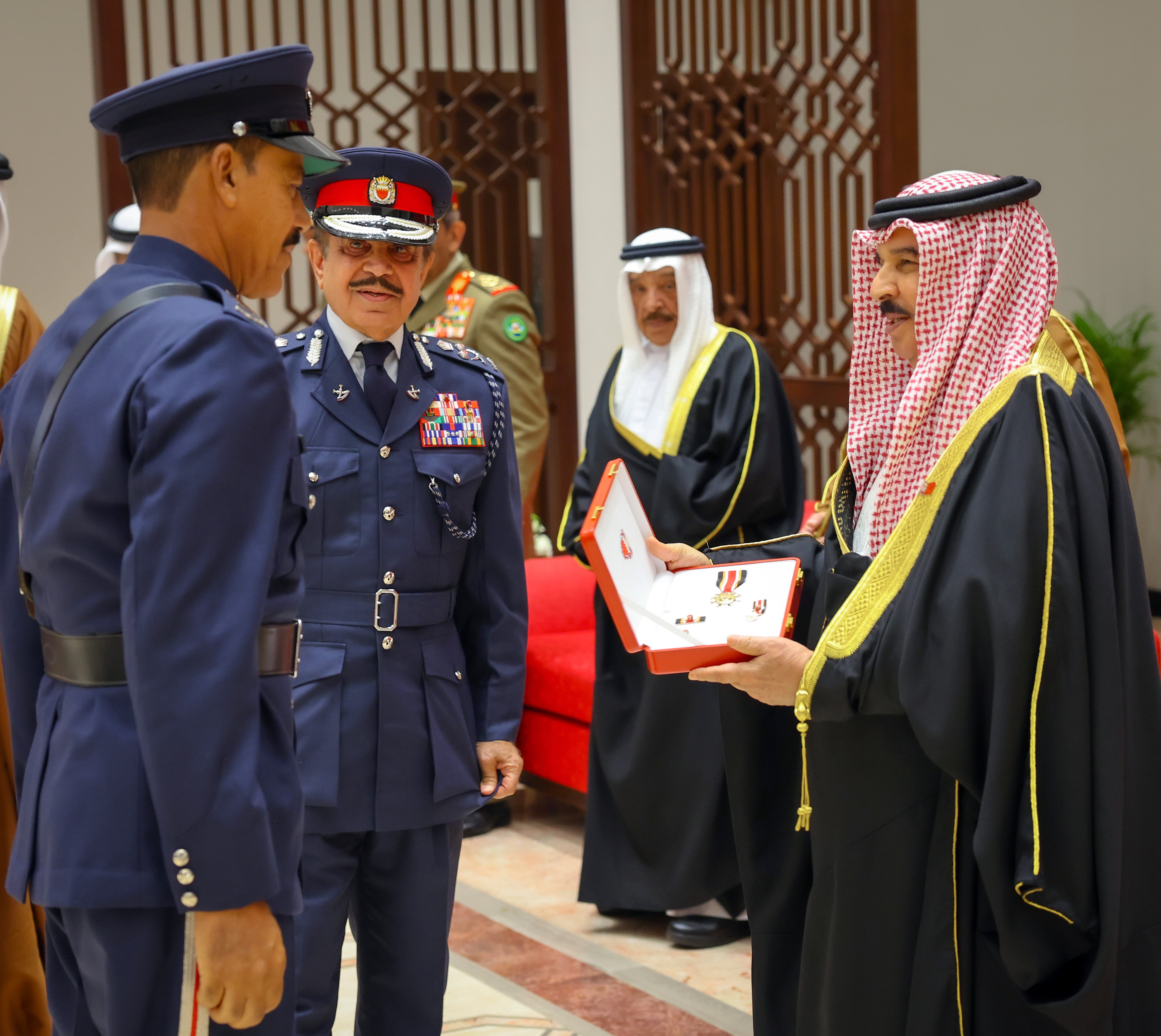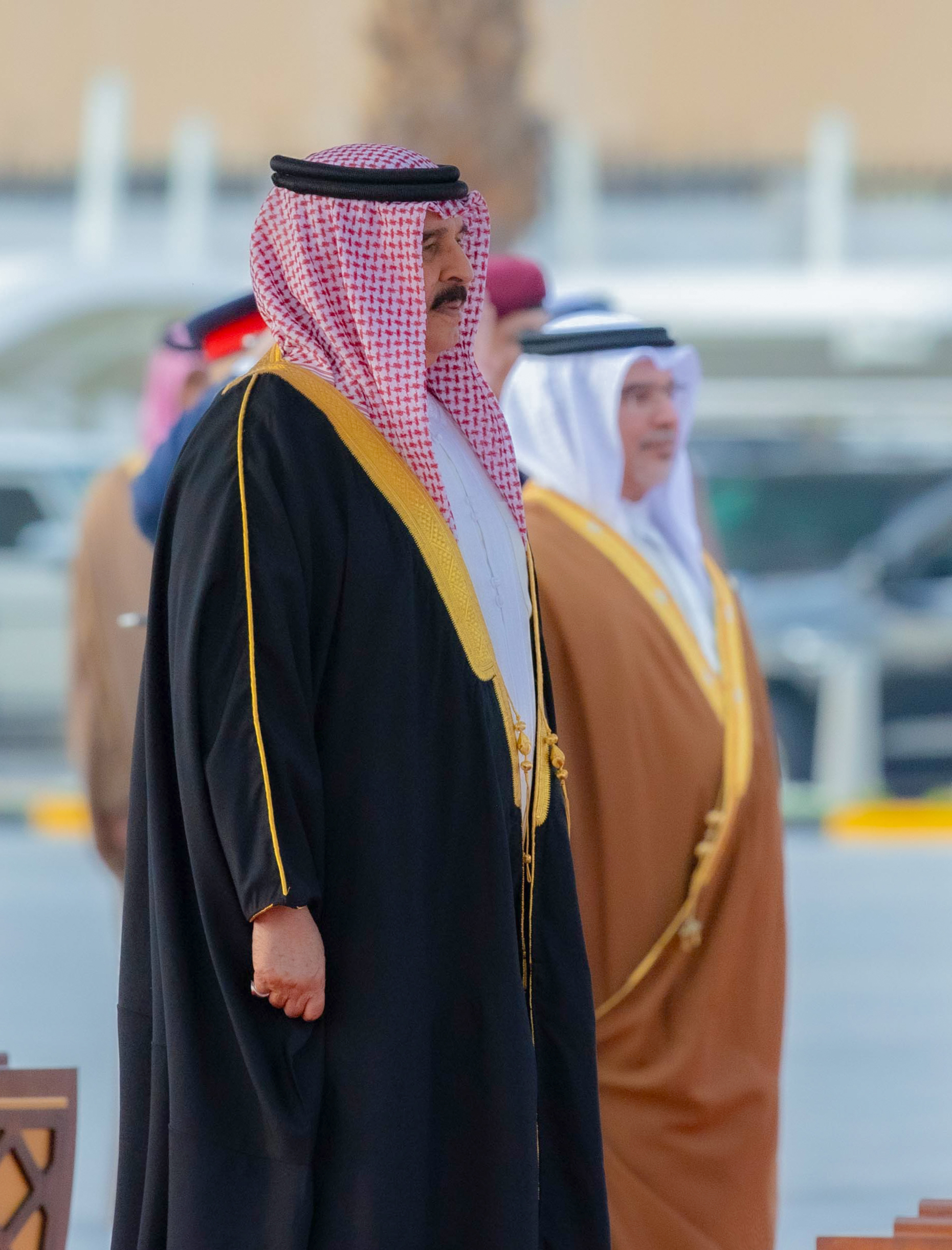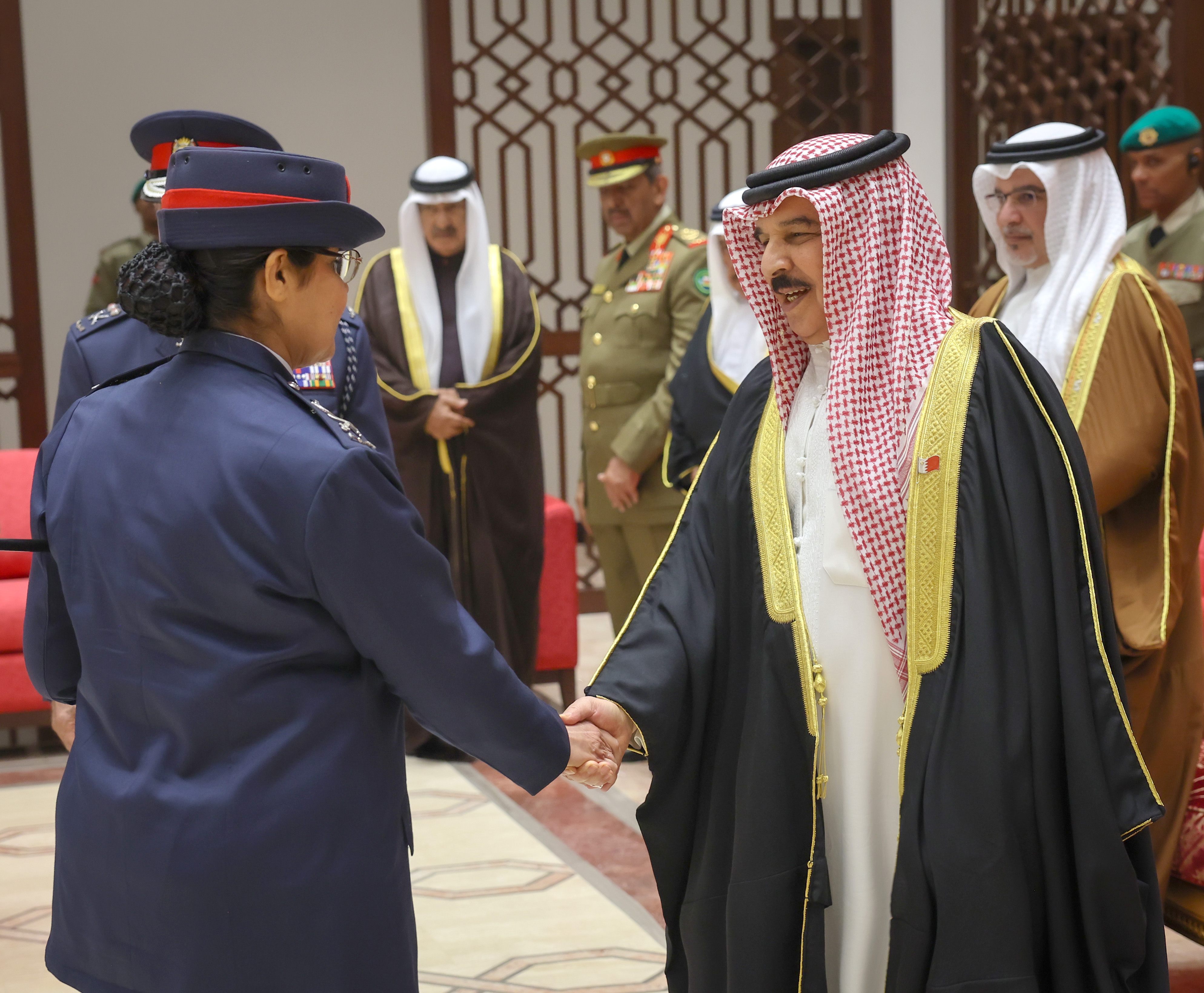 ولدى وصول جلالته، كان في الاستقبال الفريق أول معالي الشيخ راشد بن عبدالله آل خليفة وزير الداخلية، كما حضر الاحتفال عدد من أصحاب السمو والمعالي والسعادة من كبار المسؤولين .