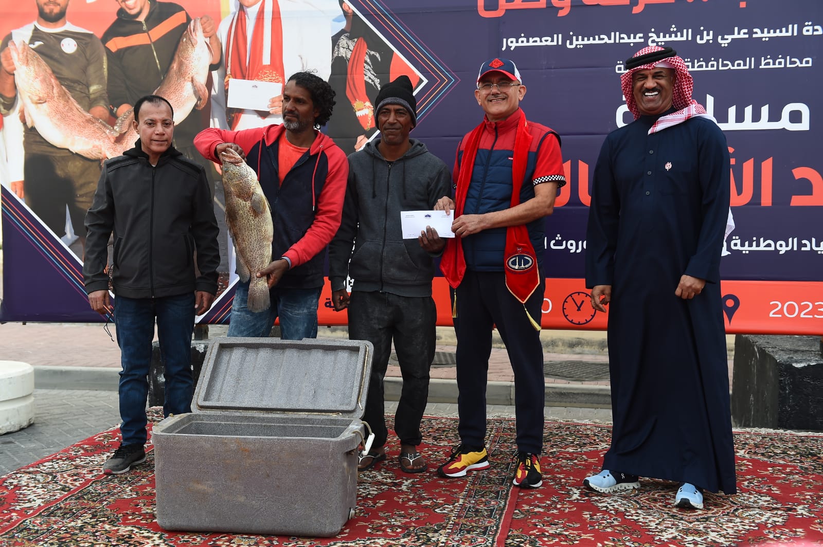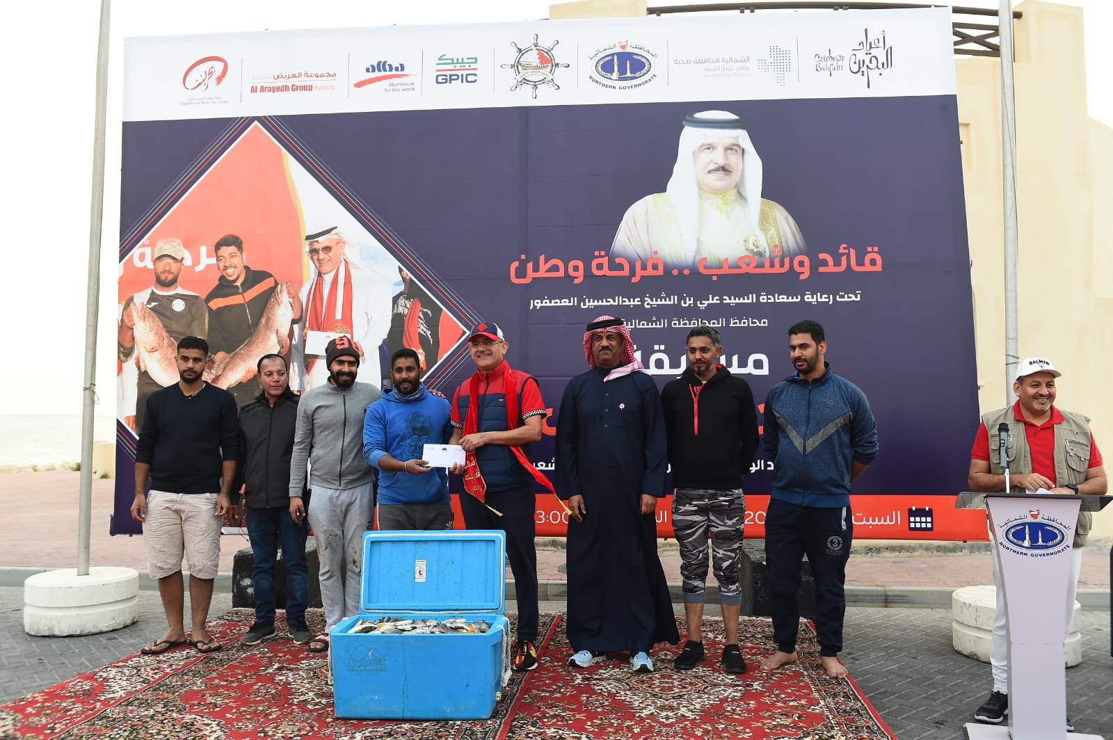 في إطار احتفال المحافظة الشمالية بالأعياد الوطنية المجيدة ، وتحت شعار "قائد وشعب.. فرحة وطن"، حضر السيد علي بن الشيخ عبد الحسين العصفور محافظ المحافظة الشمالية حفل ختام مسابقة صيد الأسماك التي نظمتها المحافظة الشمالية بالتعاون مع لجنة رياضات الموروث البحري وذلك في مرفأ البديع، بمشاركة 30 صيادًا يمثلون مختلف قرى ومدن المحافظة الشمالية .