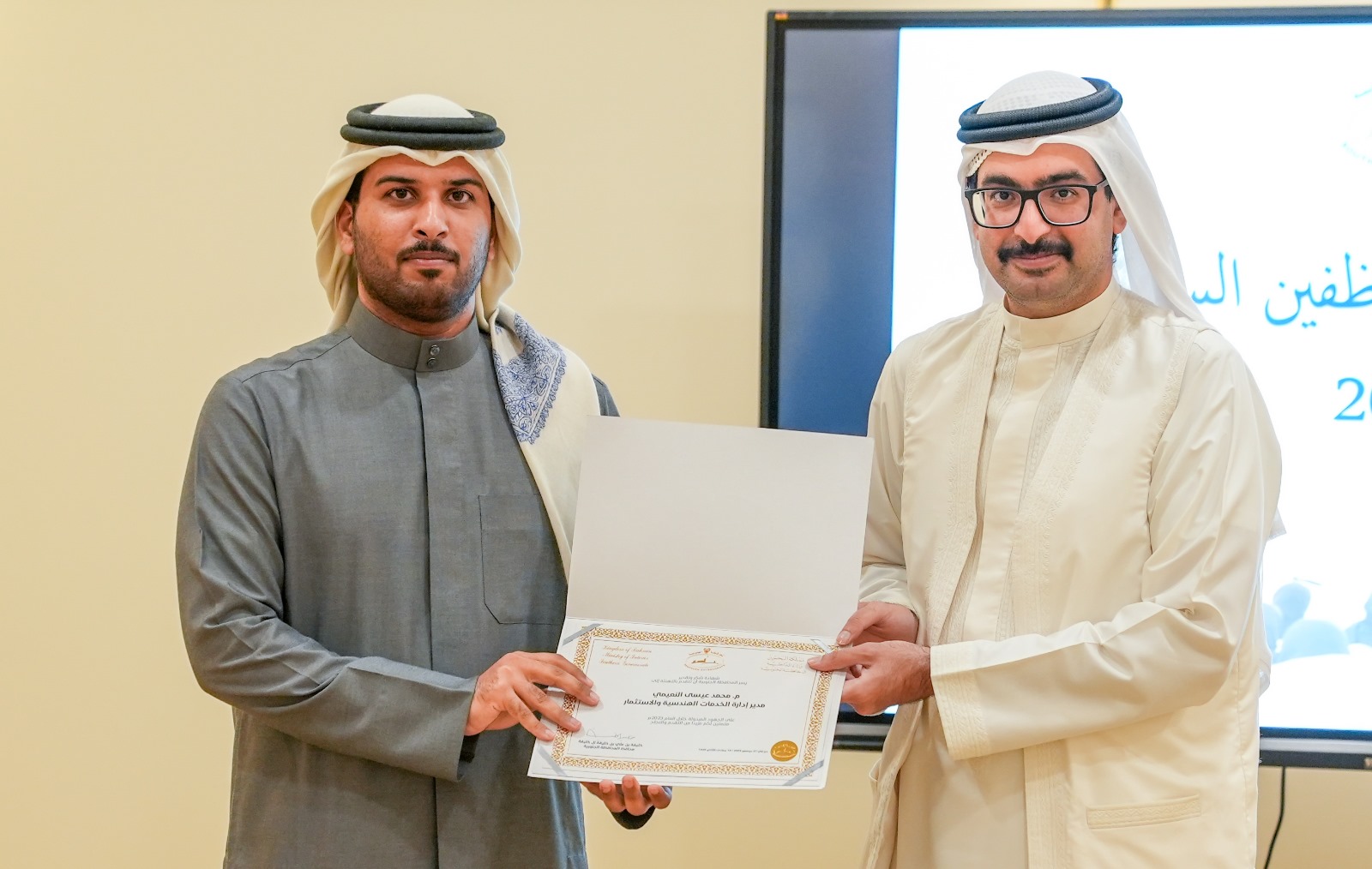 كرم سمو الشيخ خليفة بن علي بن خليفة آل خليفة محافظ المحافظة الجنوبية، بحضور العميد حمد محمد الخياط نائب المحافظ ، موظفي المحافظة، وذلك في عادة سنوية حرصت عليها المحافظة الجنوبية لتكريم منتسبيها بشكل مستمر لجهودهم المبذولة واسهاماتهم الرائدة في خدمة المحافظة ومتابعة تنفيذ المشروعات فيها من جهة، ودعم المحافظة للعنصر البشري من جهة ثانية.