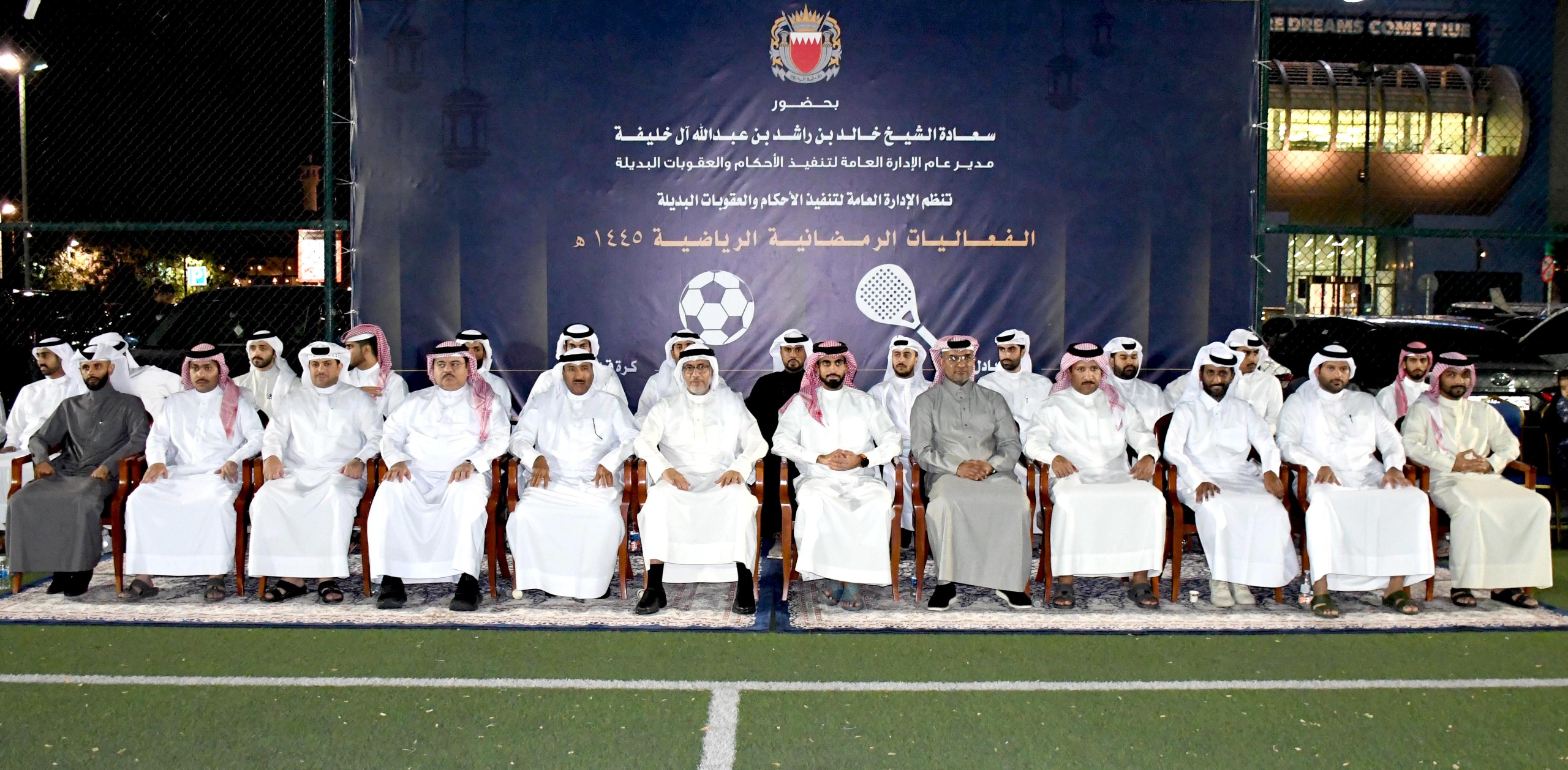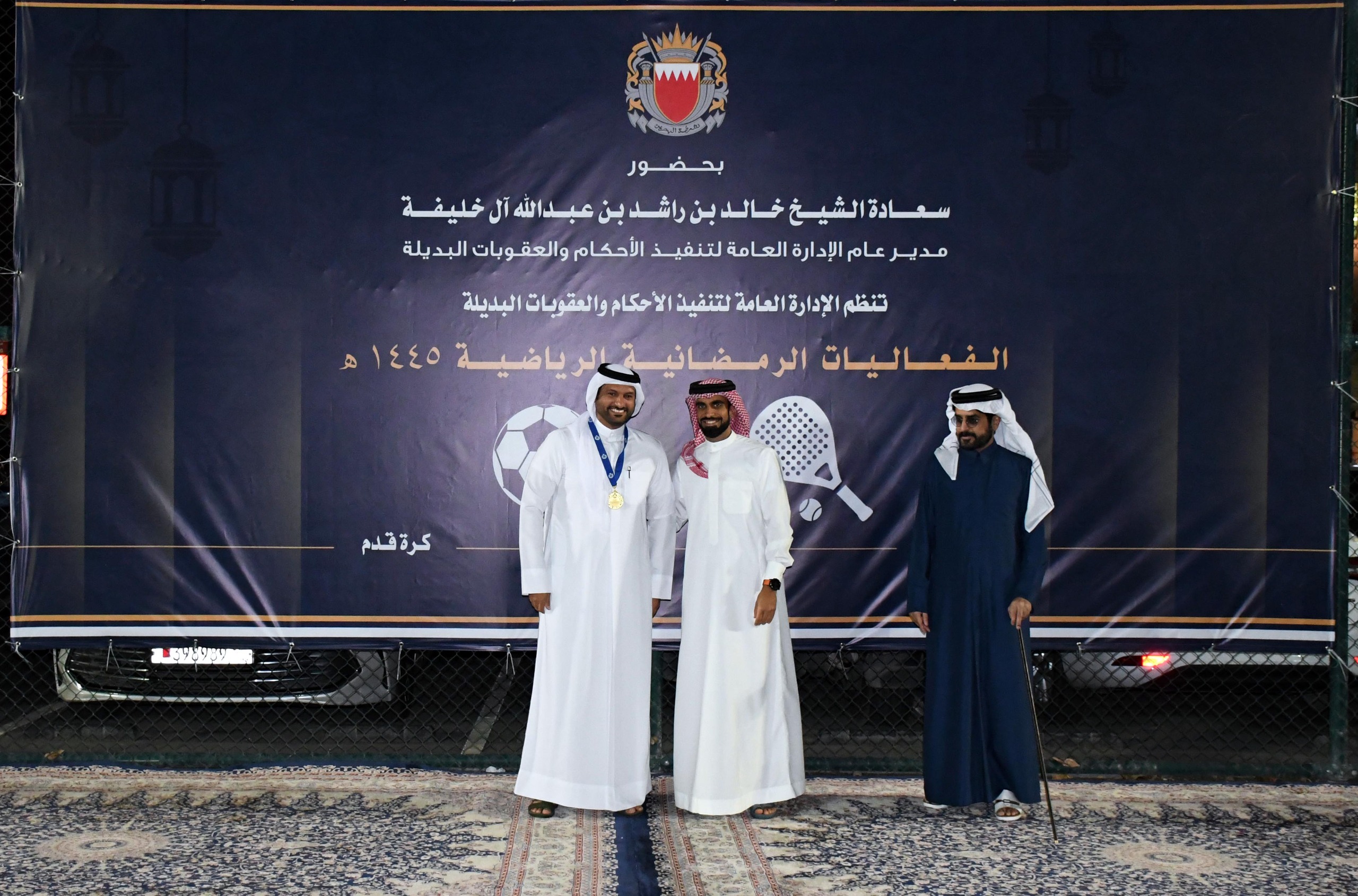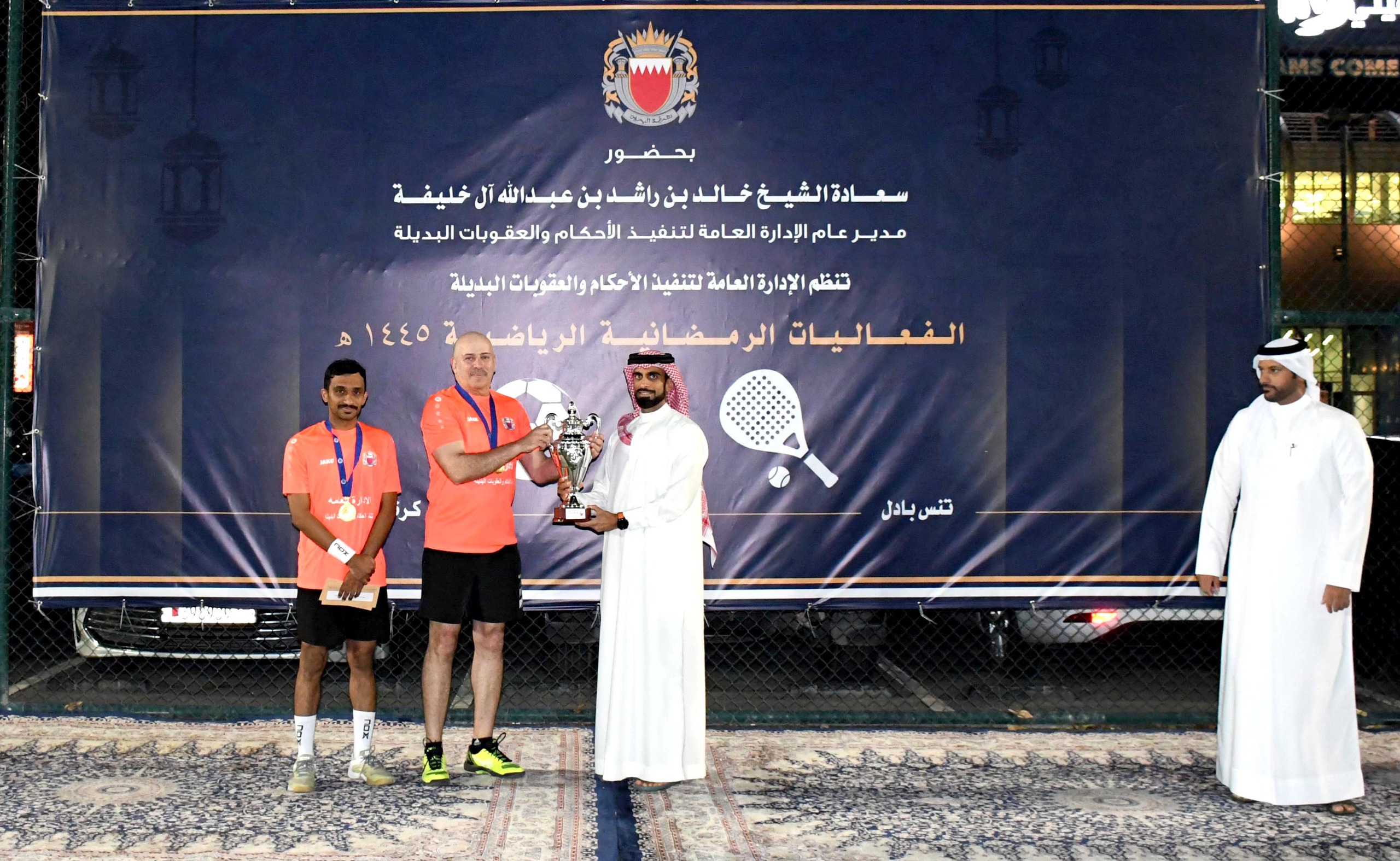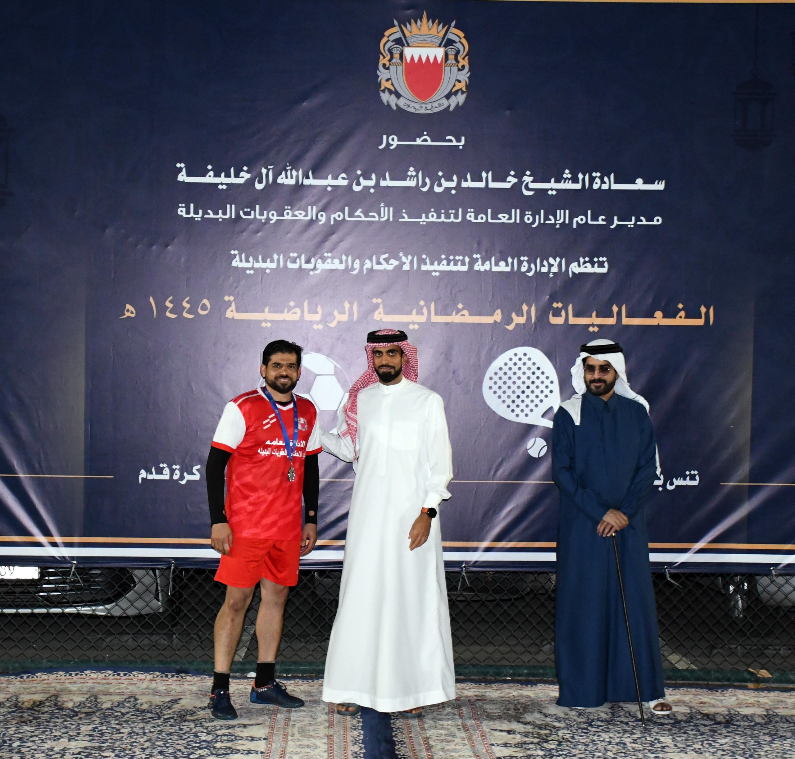 توّج سعادة الشيخ خالد بن راشد آل خليفة مدير عام الإدارة العامة لتنفيذ الأحكام والعقوبات البديلة ، الفرق الفائزة في البطولة الرمضانية الثانية لكرة القدم ولعبة البادل التي نظمتها الإدارة على ملاعب "جرافيتي" بمشاركة عدد من موظفي الإدارات بوزارة الداخلية ، بالإضافة إلى المستفيدين من العقوبات البديلة وبرنامج السجون المفتوحة،