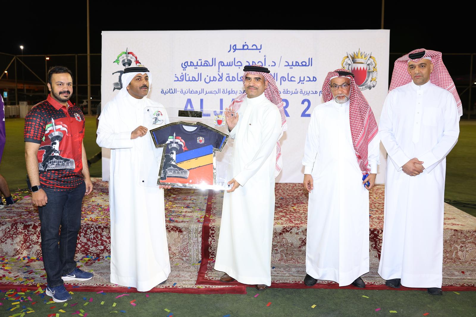 توّج العميد الدكتور أحمد جاسم الهتيمي مدير عام الإدارة العامة لأمن المنافذ فريق المتحدة للتأمين بطلاً لبطولة الجسر الرمضانية لكرة القدم في نسختها الثانية، والتي نظمتها مديرية شرطة جسر الملك فهد بمشاركة 10 فرق من الإدارات العاملة بالجسر.