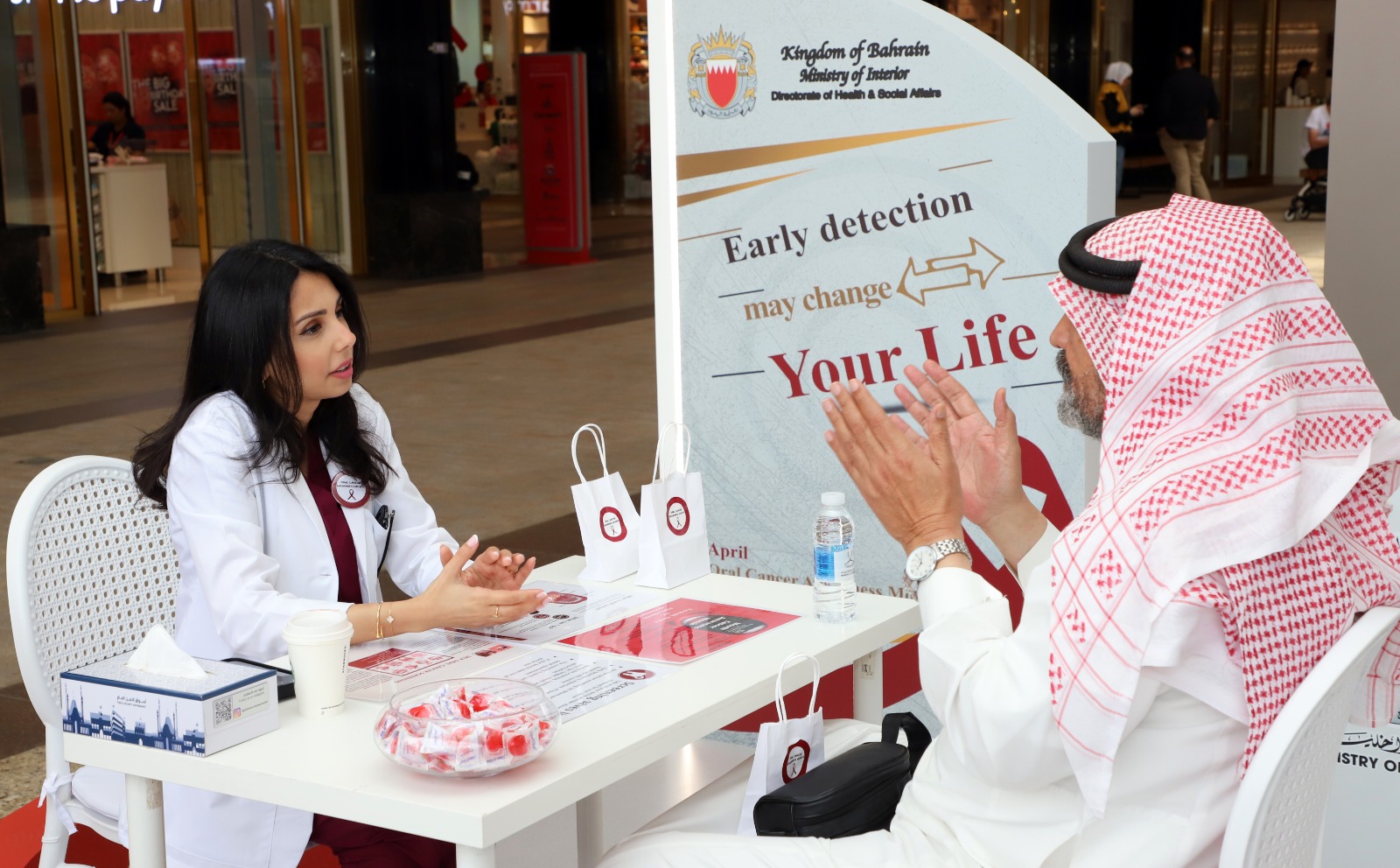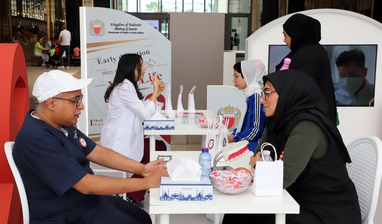 تزامناً مع شهر التوعية بسرطان الفم الذي يقام خلال شهر أبريل من كل عام ، نظمت شعبة الاسنان بإدارة الشئون الصحية والاجتماعية بوزارة الداخلية حملة توعوية تحت عنوان "الفحص المبكر قد يغير حياتك" بمجمع الأفنيوز.