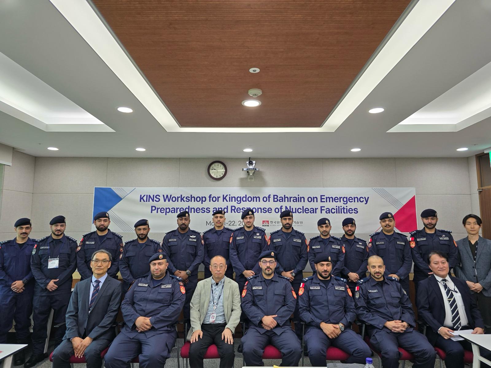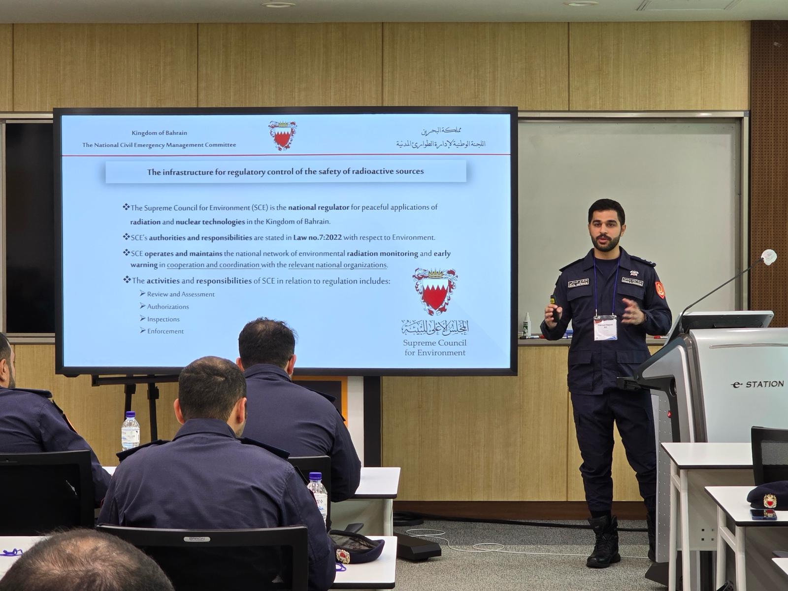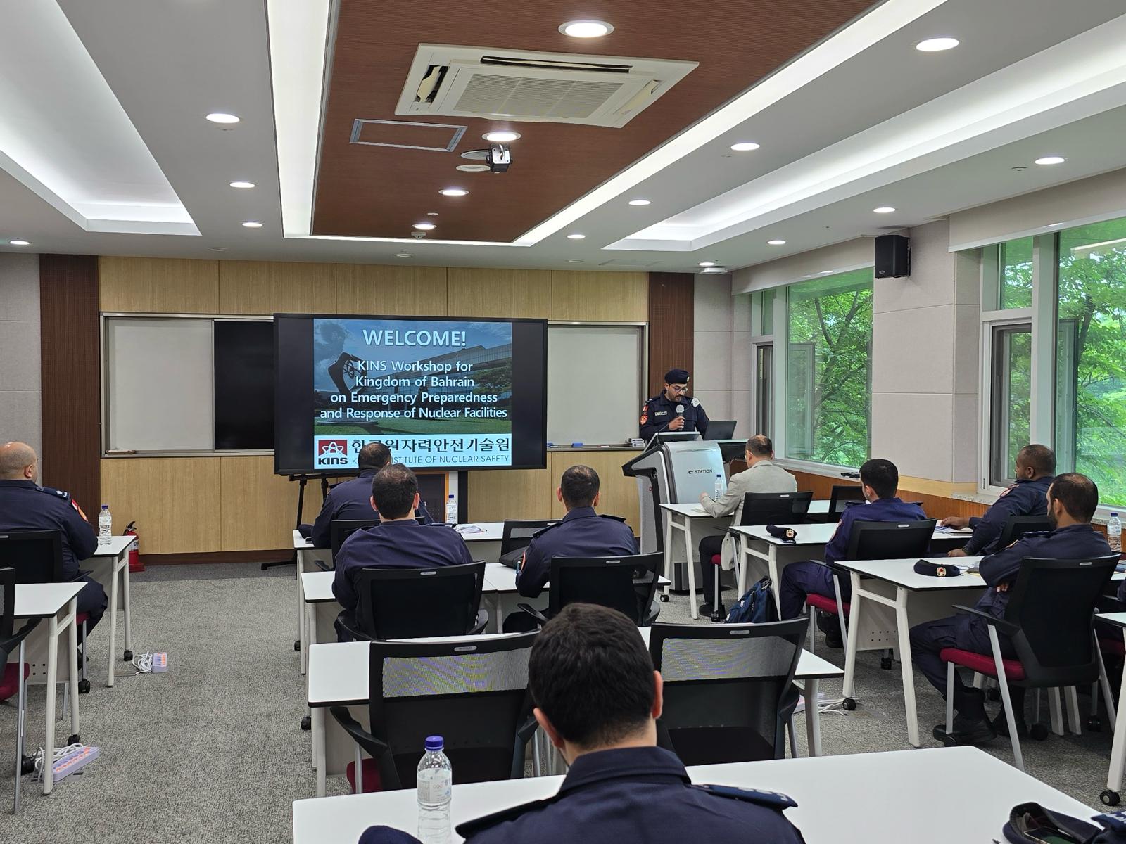 تنفيذاً لتوجيهات الفريق أول معالي الشيخ راشد بن عبدالله آل خليفة وزير الداخلية رئيس مجلس الدفاع المدني بالعمل على تطوير التعاون في مجال السلامة العامة وتعزيز الحماية المدنية مع جمهورية كوريا الجنوبية وتبادل الخبرات في مجالات الوقاية والاستجابة للطوارئ والاطلاع على التجارب الدولية في هذا المجال وخاصة فيما يتعلق بحالات الاستجابة والإنقاذ أثناء الطوارئ ، وفي إطار المتابعة الحثيثة للجنة الوطنية لإدارة الطوارئ المدنية ، فقد شارك عدد من ضباط إدارات وزارة الداخلية في ورشة عمل حول "الاستعداد والاستجابة لحالات الطوارئ النووية والإشعاعية" ، والتي تمت بالتعاون بين المعهد الكوري للسلامة النووية (KINS) والمكتب التنفيذي للجنة الوطنية لإدارة الطوارئ المدنية ضمن سلسلة من أوجه التعاون التدريبي المستمر في هذا المجال ، وذلك خلال الفترة من 21-22 مايو 2024 في مدينة دايجون بجمهورية كوريا الجنوبية .