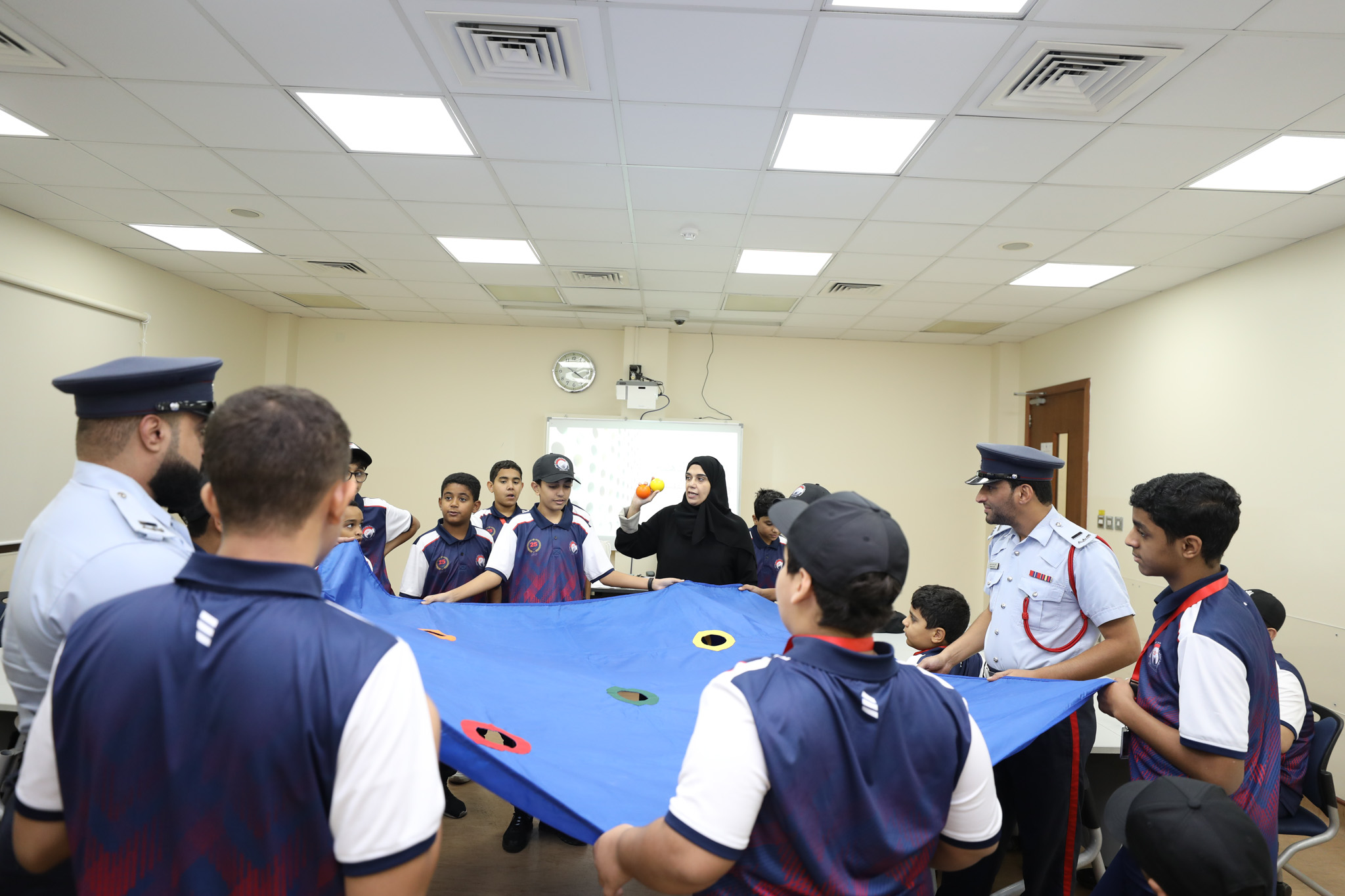 ضمن فعاليات المعسكر الصيفي للأكاديمية الملكية للشرطة الخامس عشر الذي يُعد أحد مبادرات الخطة الوطنية لتعزيز الانتماء الوطني وترسيخ قيم المواطنة "بحريننا"، ويقام بالتعاون مع صندوق العمل "تمكين"، شارك طلبة المعسكر في عدد من الأنشطة المتنوعة، إضافة إلى قيامهم بزيارات لمجلسي الشورى والنواب وشركة مصنع الجسر ومركز رعاية الطلبة الموهوبين.