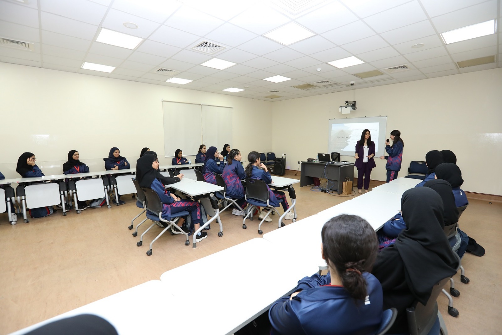 وفي مستهل البرنامج، شاركت الطالبات في ورشة عمل بعنوان "صحتي النفسية طريق نجاحي وتطور مجتمعي" قدمتها الأستاذة تقوى بيطار، وتهدف الورشة إلى التوعية بأهمية الصحة النفسية وتأثيرها على النجاح الشخصي والتطور المجتمعي بالإضافة إلى تنمية المهارات الشخصية للطالبات مثل إدارة الضغط النفسي والتفكير الإيجابي.