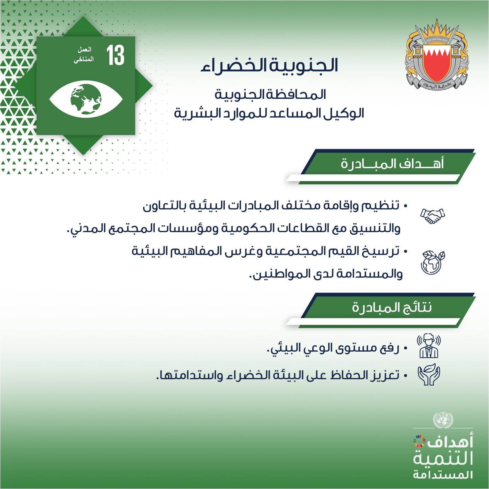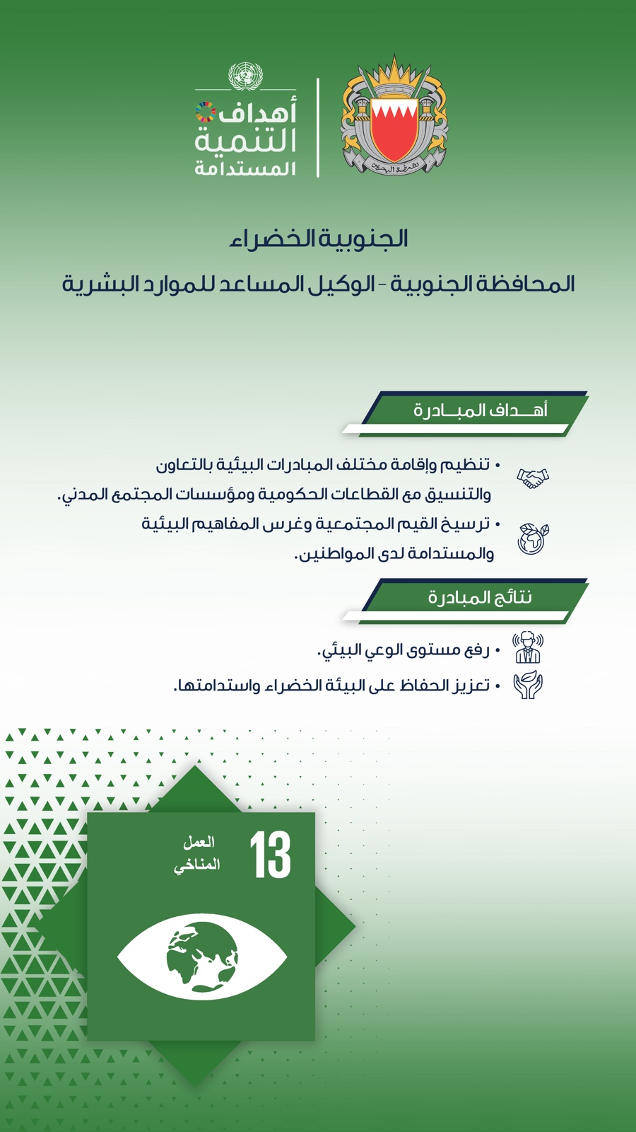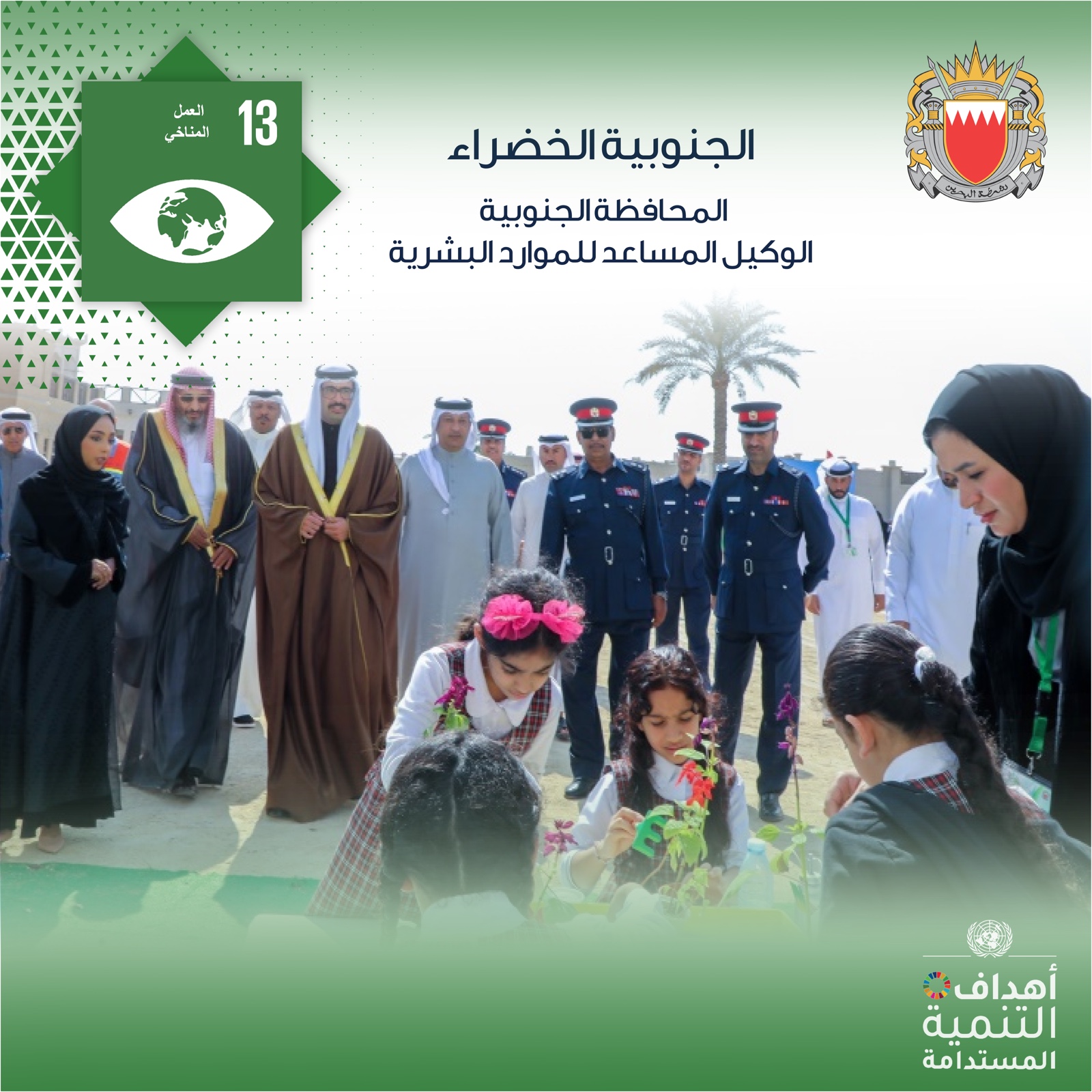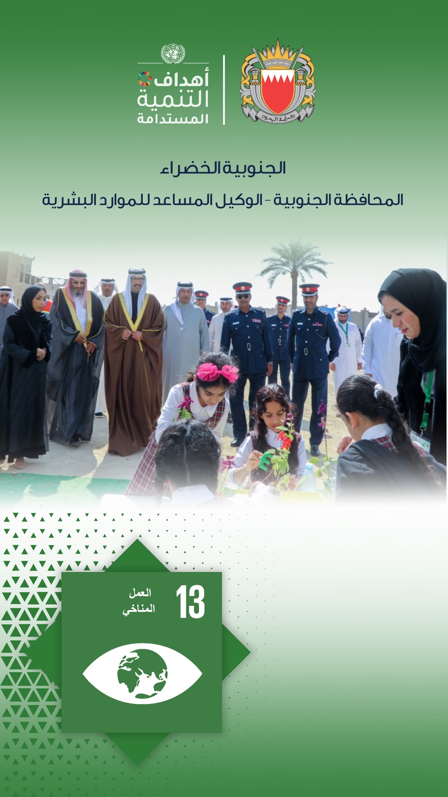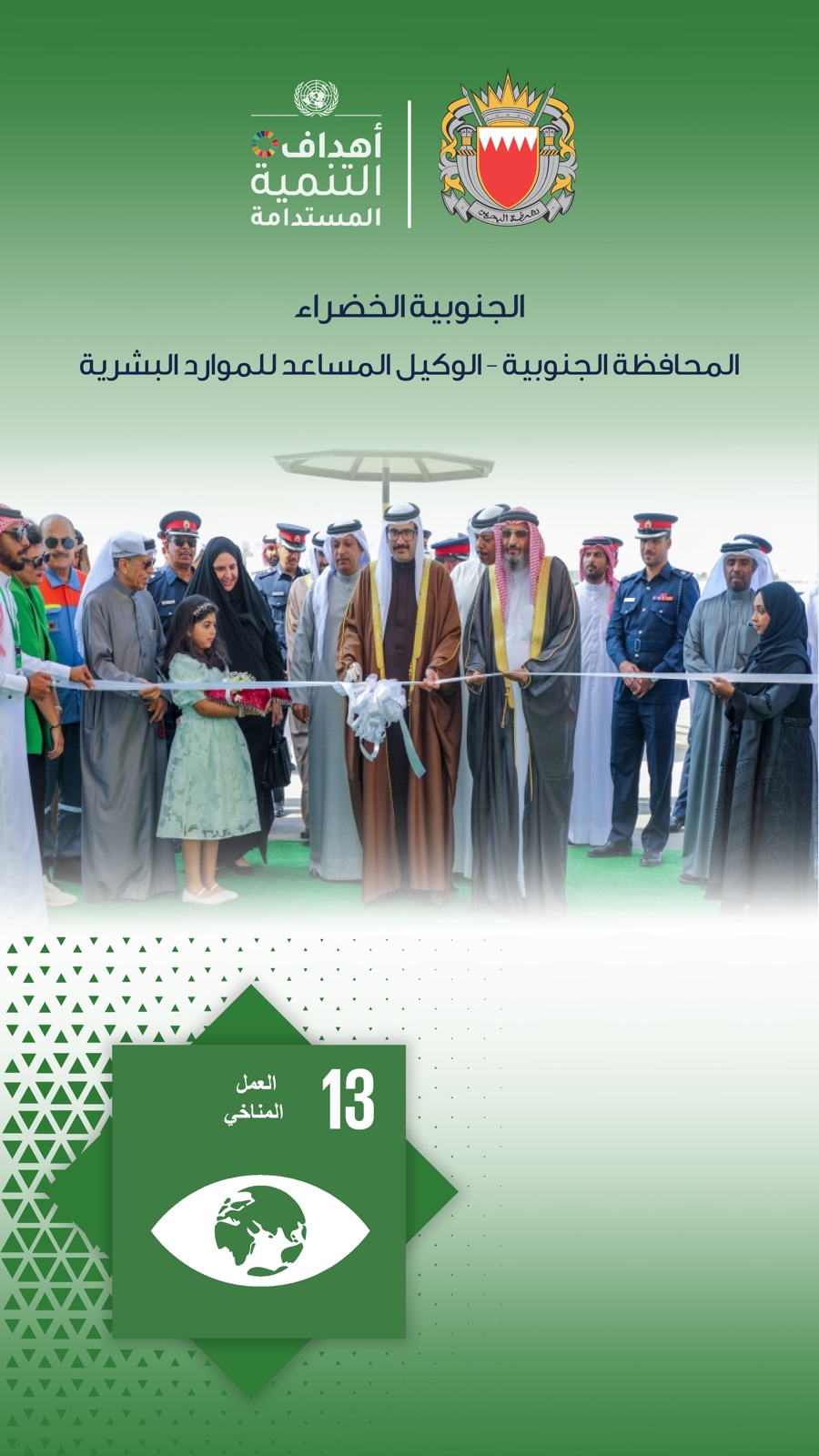 افتتح سمو الشيخ خليفة بن علي بن خليفة آل خليفة محافظ المحافظة الجنوبية، فعالية (الجنوبية الخضراء) التي تنظمها المحافظة الجنوبية على مدى يومين بالتعاون مع الموارد البشرية بوزارة الداخلية.