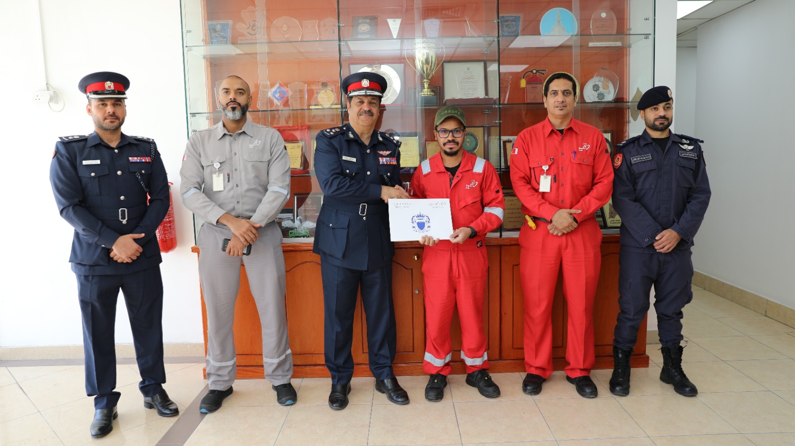 الإدارة العامة للدفاع المدني تخرج (363)شخصا من منتسبي شركة نفط البحرين "بابكو" الذين شاركوا في البرنامج التدريبي المتكامل لمكافحة الحريق والتعامل مع المواد الخطرة، الذي يهدف إلى النهوض بالكوادر الوطنية المختصة في السلامة العامة، وذلك بحضور مدير عام الإدارة العامة للدفاع المدني العميد ركن طيار علي محمد الكبيسي وعدد من مسؤولين شركة بابكو .