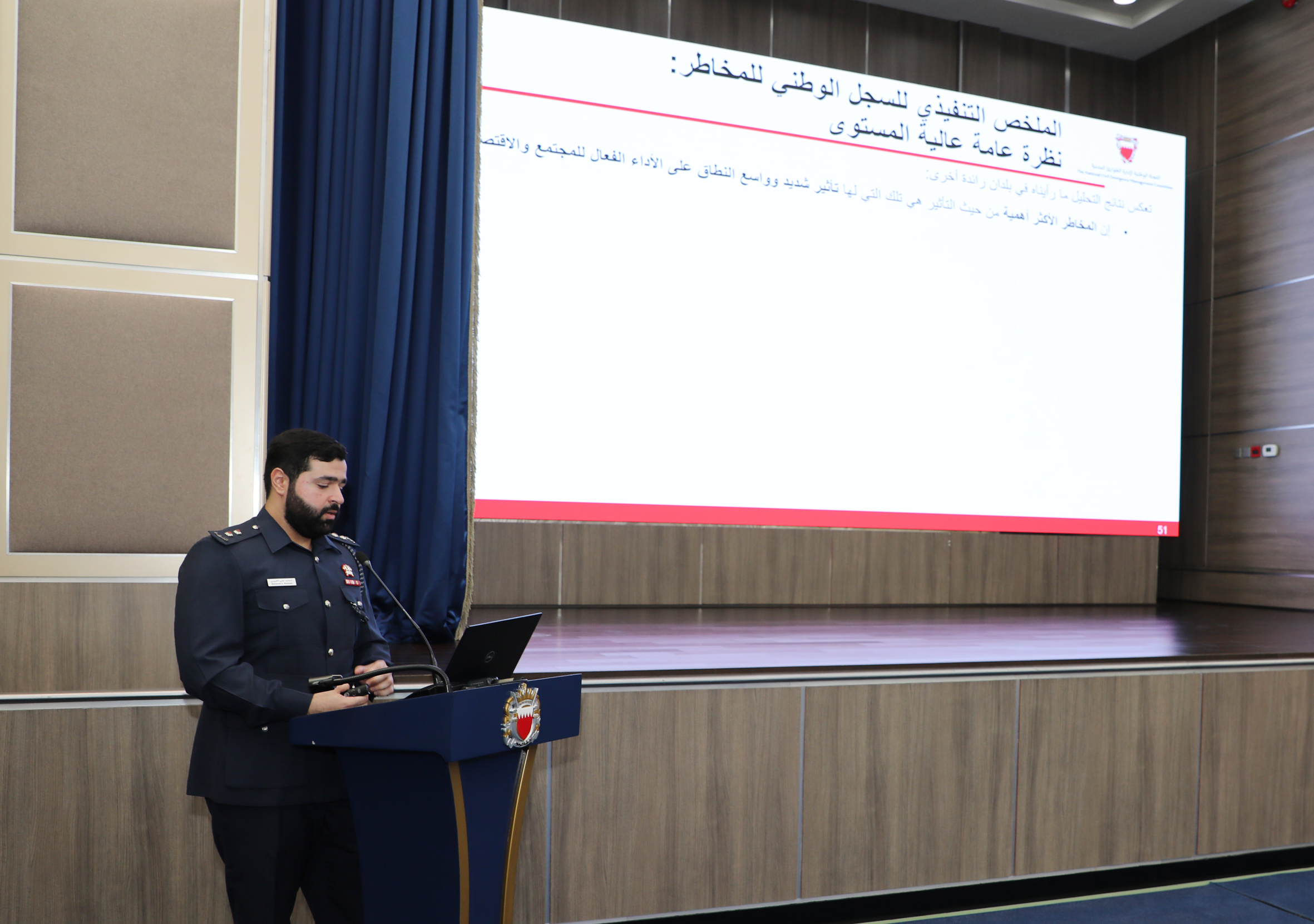 نظم المكتب التنفيذي للجنة الوطنية لإدارة الطوارئ المدنية ورشة العمل الخاصة بتحديث السجل الوطني للمخاطر وذلك في إطار الجهود الوطنية المبذولة لتعزيز السلامة العامة للمواطنين والمقيمين في المملكة وفق الاستراتيجية الوطنية للطوارئ ، بمشاركة 104 ممثلا لأعضاء اللجنة الوطنية لإدارة الطوارئ المدنية وعدد من الجهات والشركات الحكومية والخاصة.