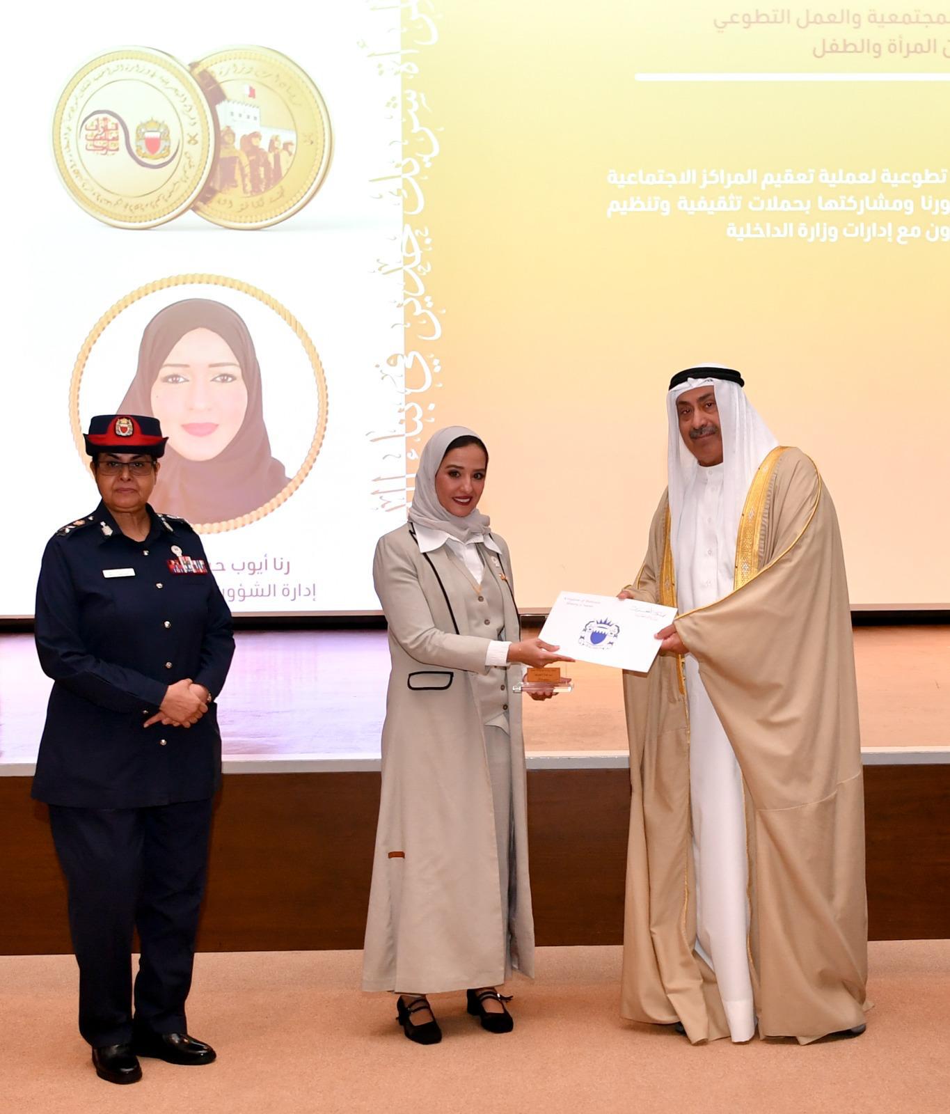 جاء ذلك خلال الاحتفال الذي نظمته الإدارة العامة للشرطة النسائية بالتعاون مع لجنة تكافؤ الفرص بالوزارة ، بمناسبة يوم المرأة البحرينية ، والذي يقام هذا العام تحت شعار "المرأة شريك جدير في بناء الدولة" حيث كرم الشيخ ناصر ، عددا من منتسبات وزارة الداخلية المتميزات في مجال عملهن ، والفائزات بجائزة "ريادات وزارة الداخلية" ، منوها إلى دور المرأة ومشاركتها الفاعلة في كافة مجالات العمل، حيث أثبتت كفاءتها وجدارتها من خلال عملها في المجال الأمني ، وموجها معاليه الشكر والتقدير لإدارات الوزارة على جهودها المخلصة في إبراز يوم المرأة البحرينية بالشكل الذي يليق بما حققته من إنجازات.