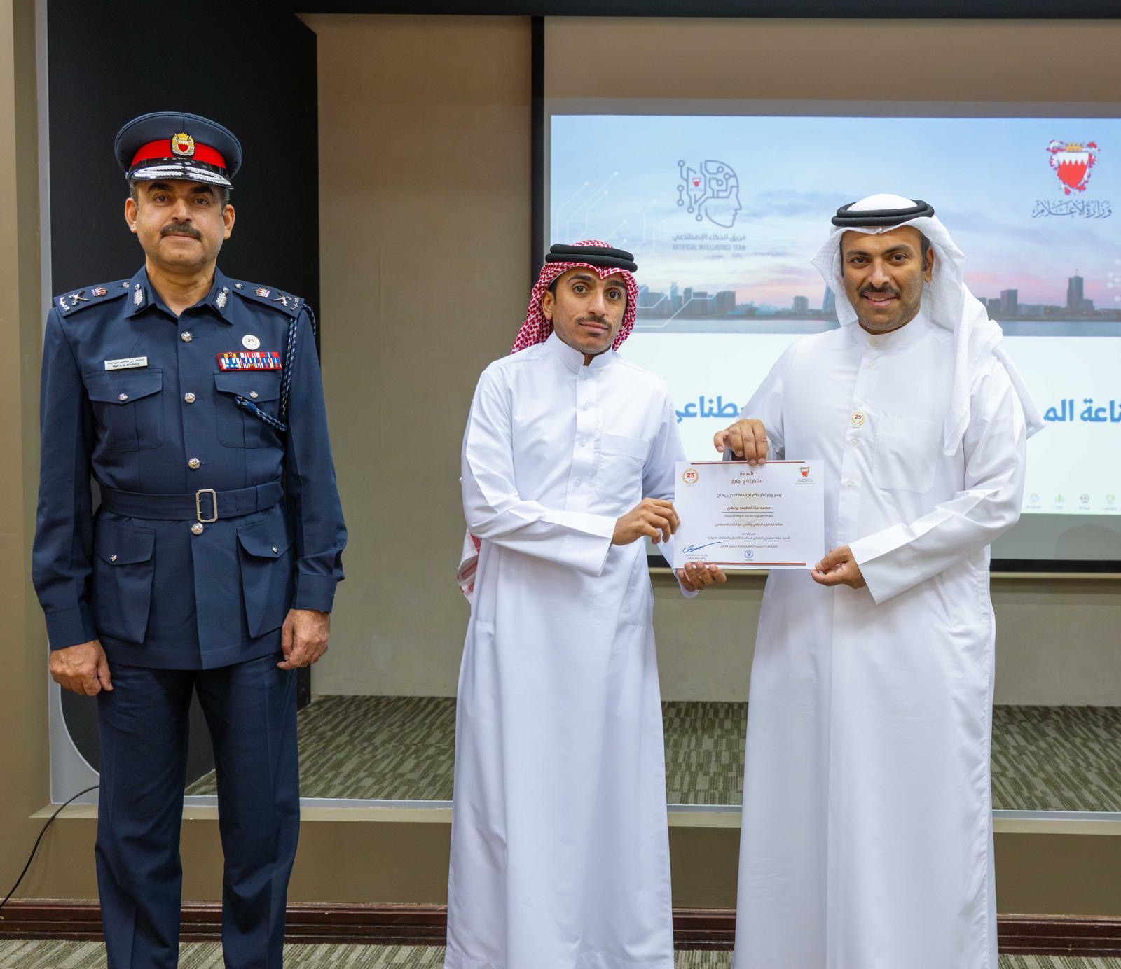 كما أكد سعادة الوزير أن الاستثمار في تدريب الكوادر الوطنية على تطبيقات الذكاء الاصطناعي يعد استثماراً استراتيجياً يعزز من قدرة المؤسسات الحكومية على التطور المستمر ومواكبة المتغيرات العالمية في هذا المجال الحيوي، موضحاً سعادته أن التعاون بين وزارة الإعلام ووزارة الداخلية يعكس التكامل المؤسسي في تنمية القدرات البشرية ضمن "فريق البحرين" الواحد، لاسيما في مجالات التطوير التقني والإعلامي.