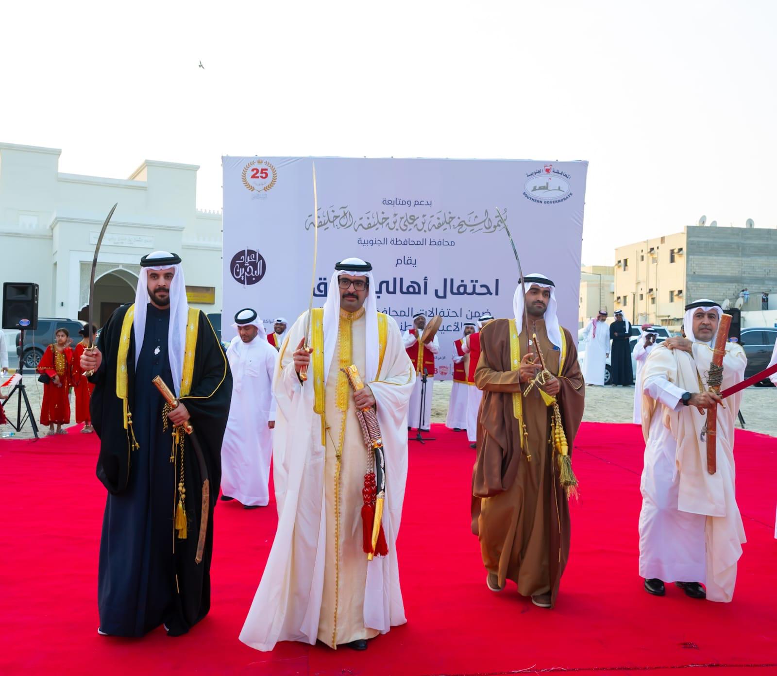 شهد سمو الشيخ خليفة بن علي آل خليفة محافظ المحافظة الجنوبية، انطلاق ثالث احتفالات فن العرضة البحرينية لأهالي منطقة الزلاق ، وذلك ضمن حزمة الفعاليات والاحتفالات الوطنية التي تنظمها المحافظة الجنوبية ، بحضور سعادة العميد حمد محمد الخياط نائب المحافظ، وعدد من النواب والوجهاء والأعيان ومشاركة متميزة من قبل الأهالي.