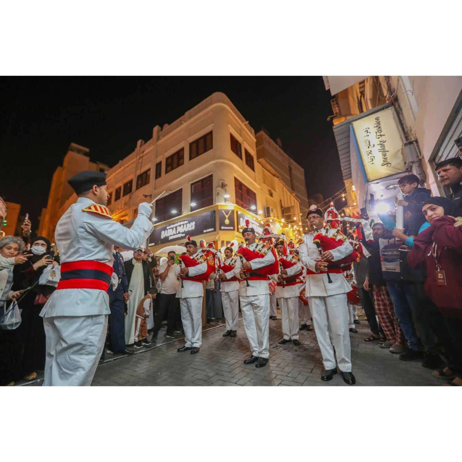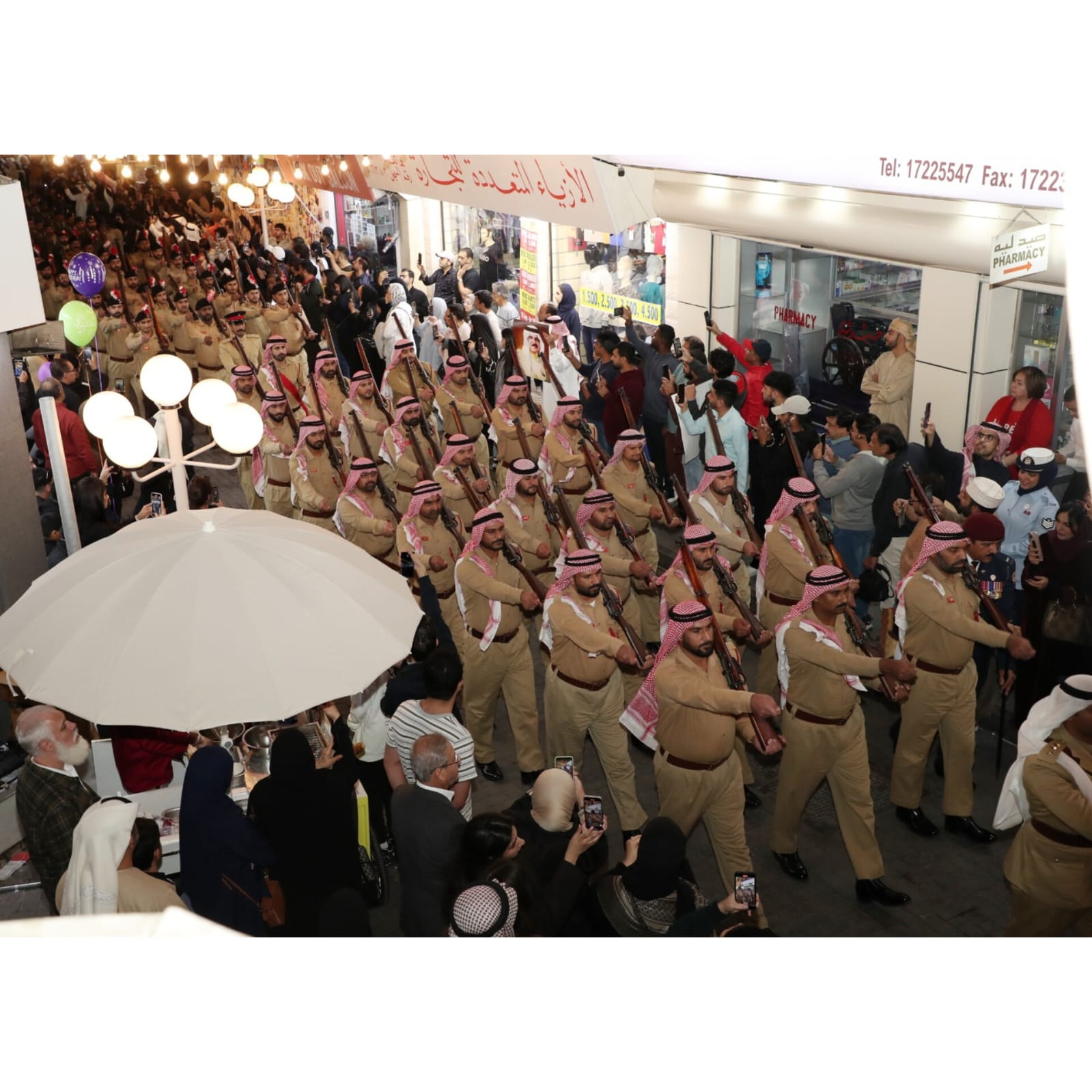 بحضور سعادة السيدة فاطمة بنت جعفر الصيرفي وزيرة السياحة، معالي الشيخ راشد بن عبدالرحمن آل خليفة محافظ محافظة العاصمة يشهد طابور شرطة البحرين الذي نظمته وزارة الداخلية بمناسبة احتفالات مملكة البحرين بأعيادها الوطنية، وعيد الجلوس الخامس والعشرين لحضرة صاحب الجلالة الملك المعظم حفظه الله ورعاه، وما يصاحبها من مناسبات وطنية، إذ عكس الحدث التوجه الأصيل في تعزيز الشراكة المجتمعية والانتماء الوطني من خلال مشاركة المواطنين والمقيمين احتفالاتهم.