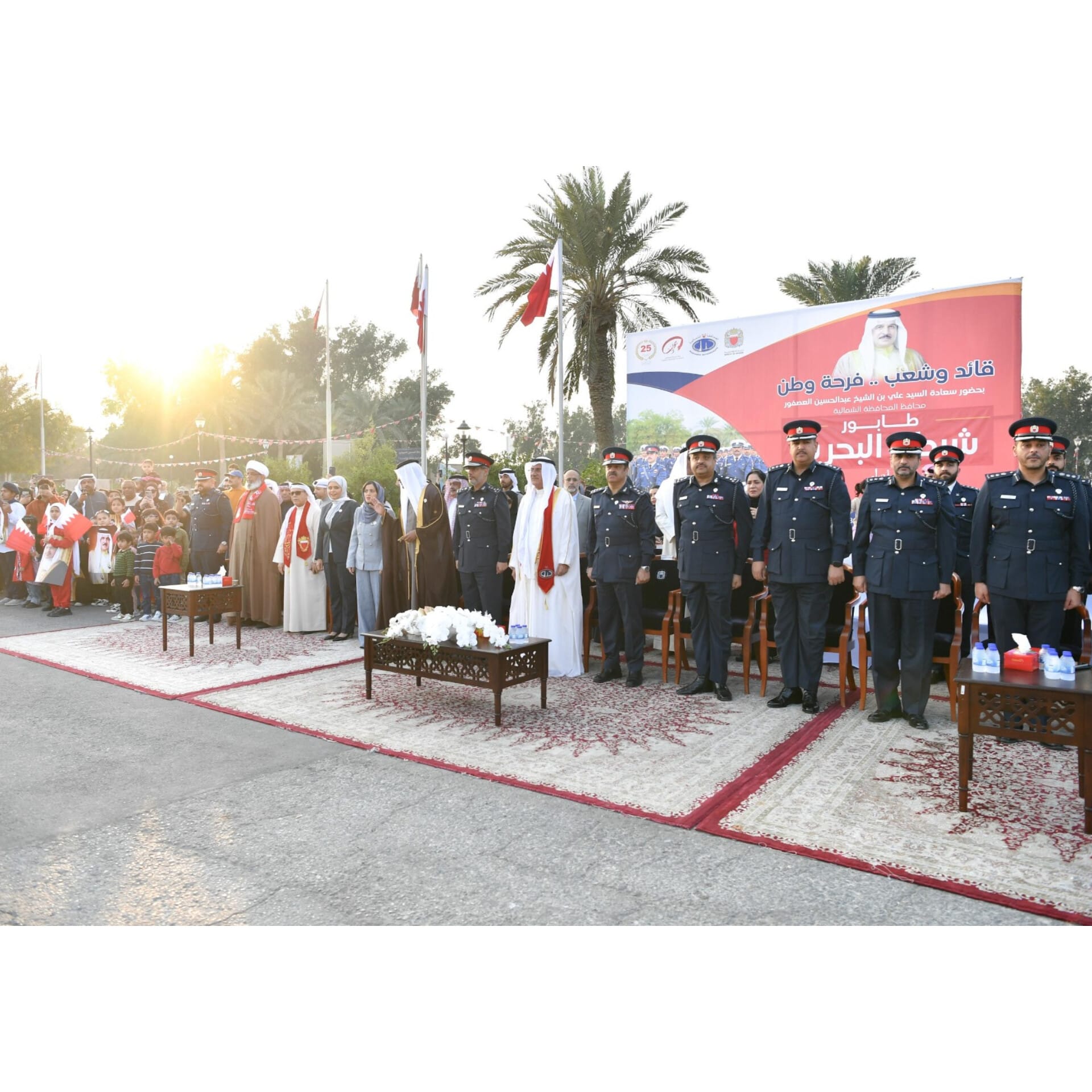 وبهذه المناسبة، أشاد سعادة محافظ الشمالية بمستوى الطابور وما شهده من فقرات متنوعة نالت إعجاب الحضور من المواطنين والمقيمين، مشيراً إلى أن تنظيم هذه الفعاليات الوطنية يهدف لتعزيز الشراكة المجتمعية والانتماء الوطني، والتي تحمل مضامين وطنية في التأييد والولاء لهذا الوطن المعطاء بقيادة حضرة صاحب الجلالة الملك حمد بن عيسى آل خليفة ملك البلاد المعظم حفظه الله ورعاه، ومتابعة الحكومة الموقرة برئاسة صاحب السمو الملكي الأمير سلمان بن حمد آل خليفة ولي العهد رئيس مجلس الوزراء حفظه الله، مثنياً على التعاون والتنسيق القائم بين المحافظة ومختلف الادارات الأمنية في إقامة هذه الفعالية المتميزة.