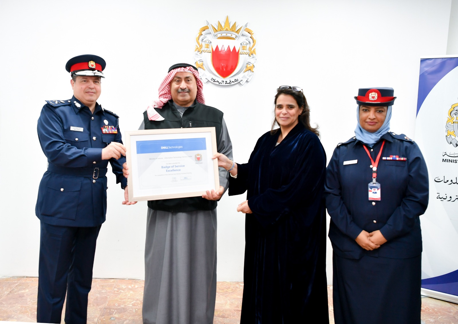 قام معالي الشيخ ناصر بن عبدالرحمن آل خليفة وكيل وزارة الداخلية ، صباح اليوم ، بحضور سعادة اللواء عادل عبدالله أمين الوكيل المساعد للموارد البشرية وسعادة الشيخة مشاعل بنت خليفة آل خليفة الوكيل المساعد للتخطيط والتنظيم ، بزيارة مركز خدمات تقنية المعلومات بإدارة تقنية المعلومات والنظم الإلكترونية بوزارة الداخلية ، بمناسبة حصول المركز على شهادة شعار التميز في الخدمة من قبل شركة Dellكأول جهة تحصل على هذه الشهادة على مستوى الجهات الحكومية في مملكة البحرين .